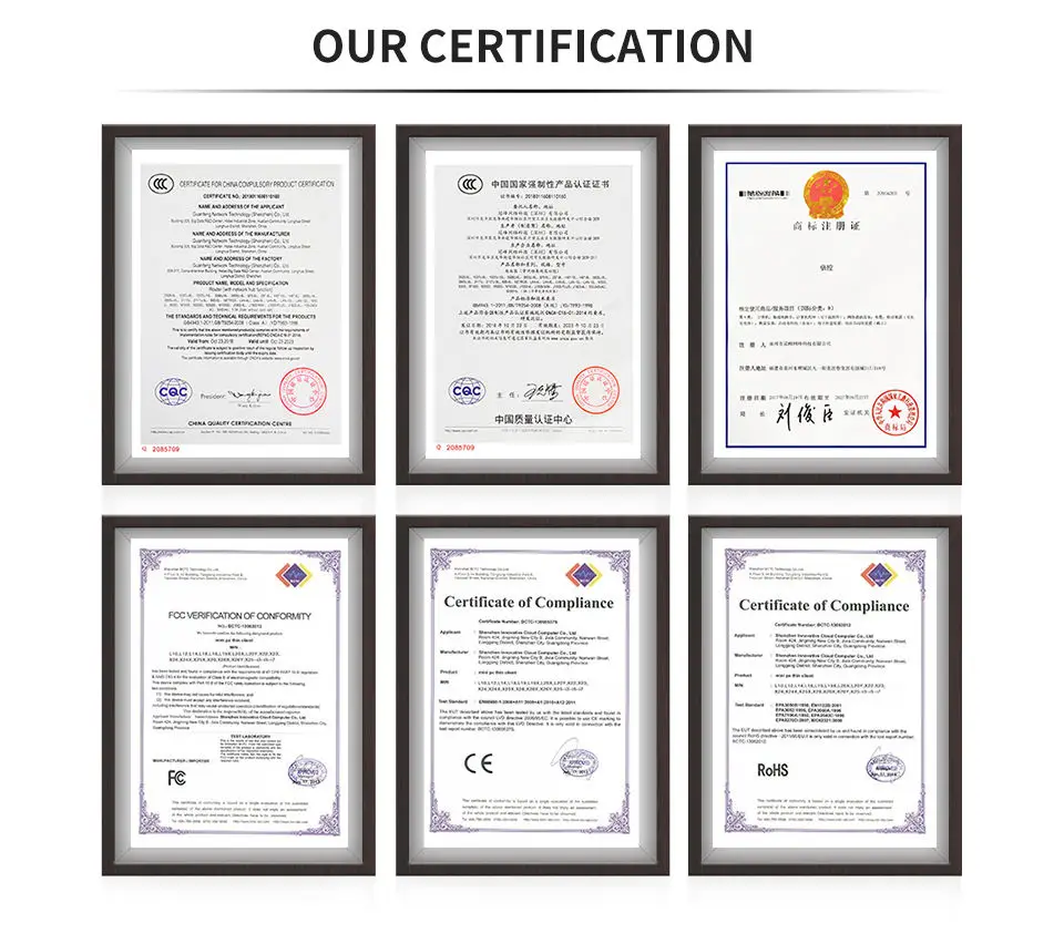 A: сертификаты CE, ROHS, CCC перечислены в приложениях