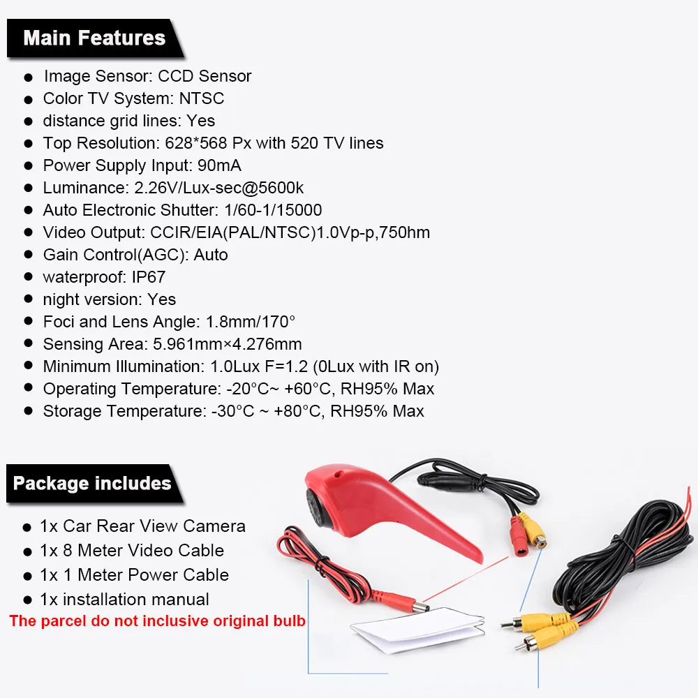 1280*720 пикселей 1000TV линия 170 градусов navinio CCD чип резервн...