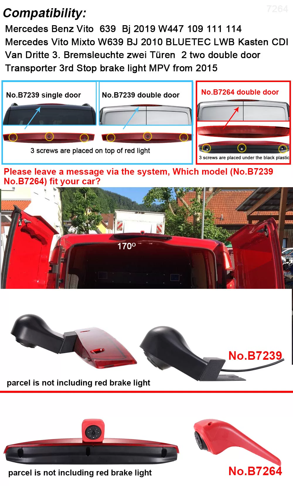 Красная Автомобильная камера заднего вида, резервная копия, задняя парковка для Mercedes Benz Vito 639 Bj 2019 W447 109 111 W639 114