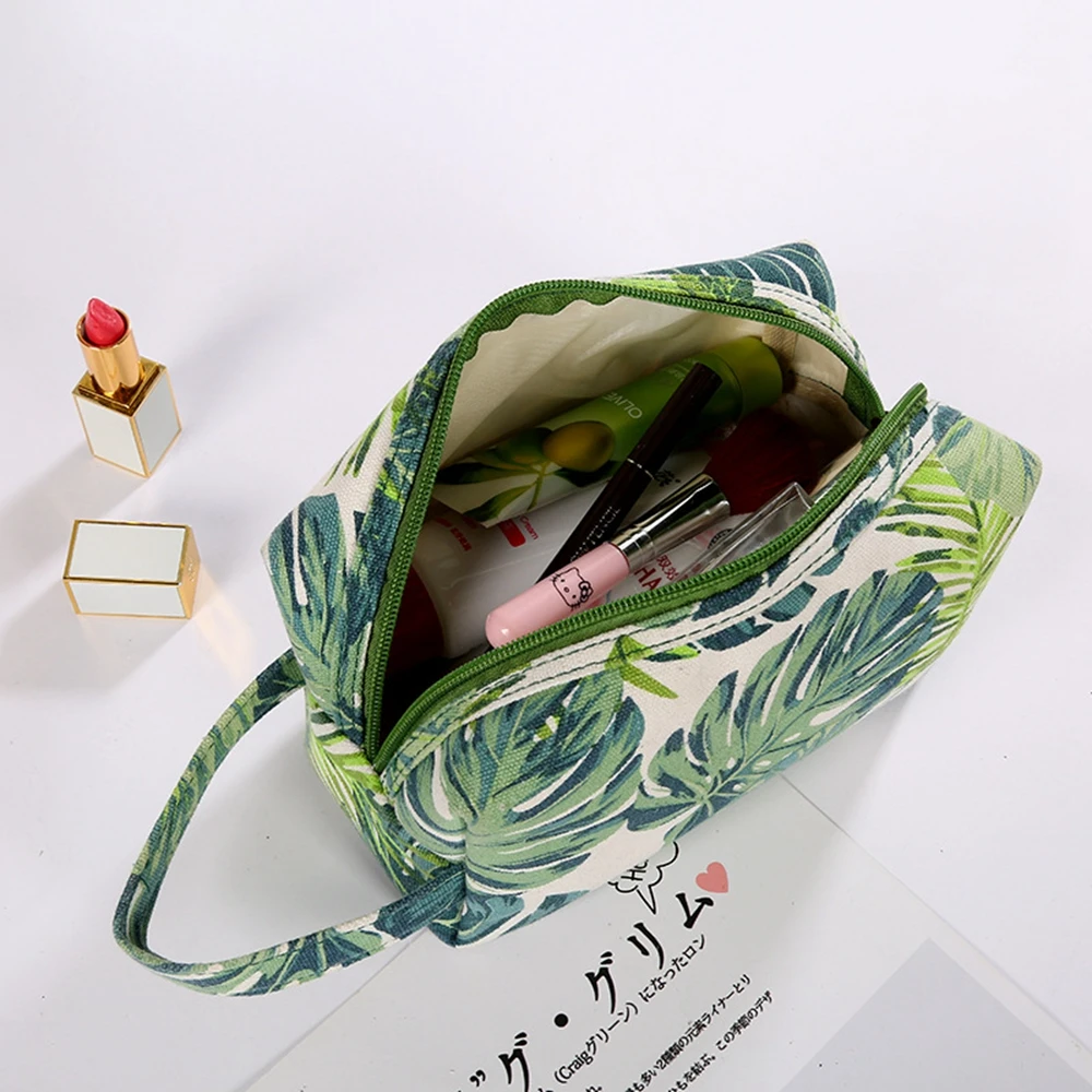 Женская косметичка PURDORED с зелеными листьями, креативная Вместит...