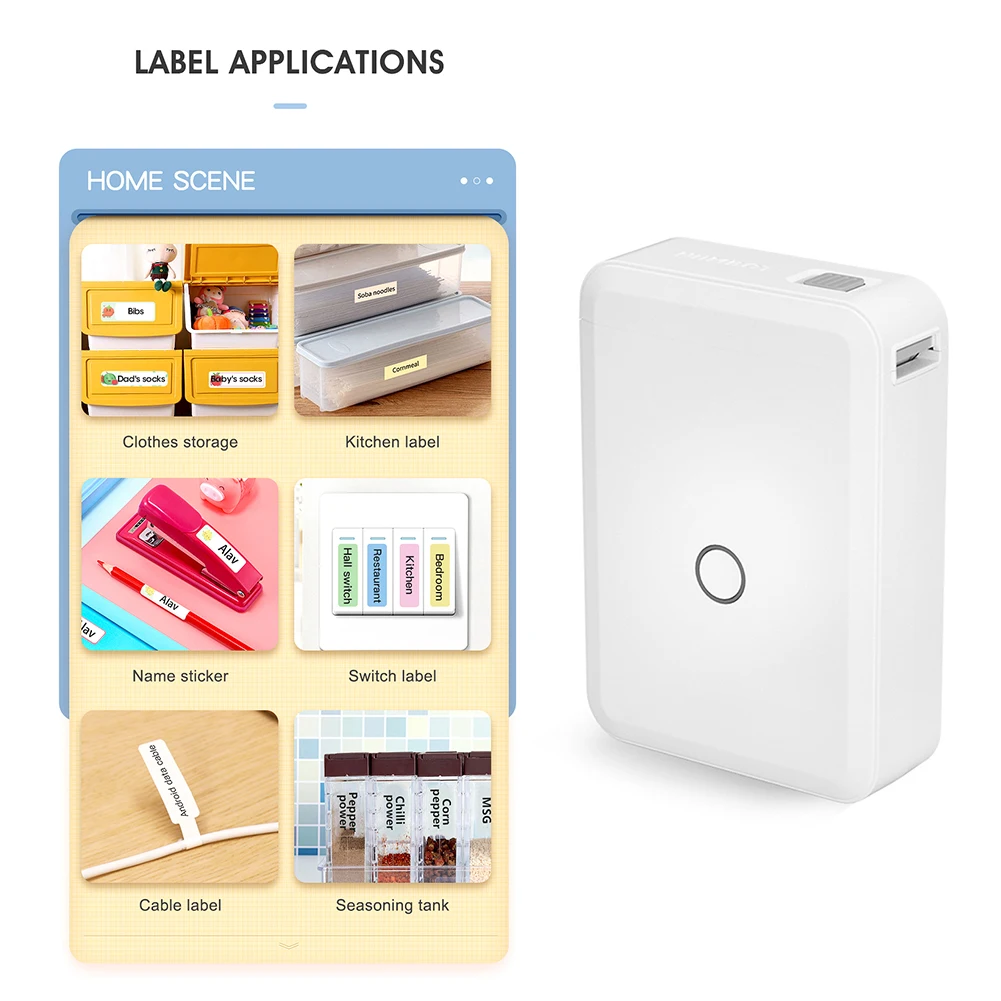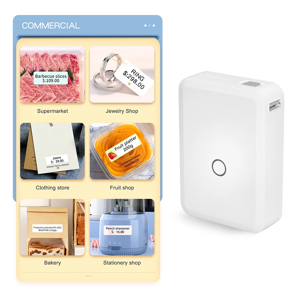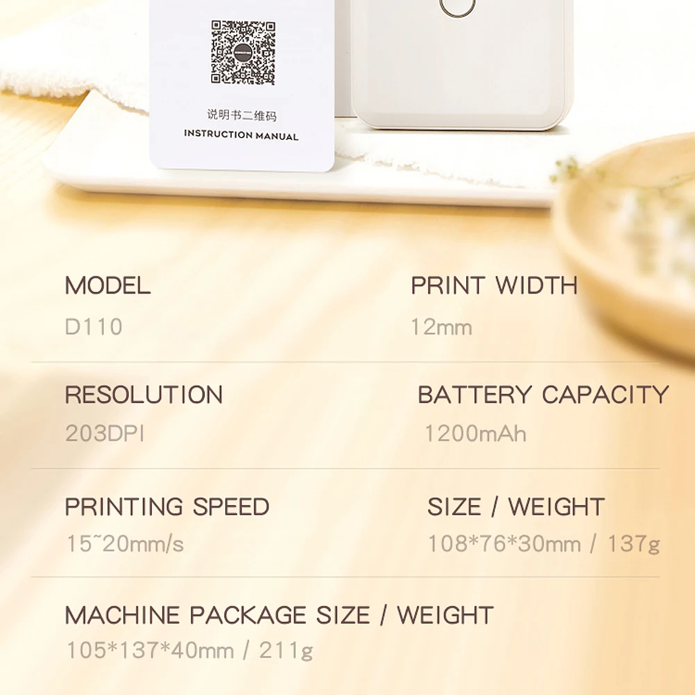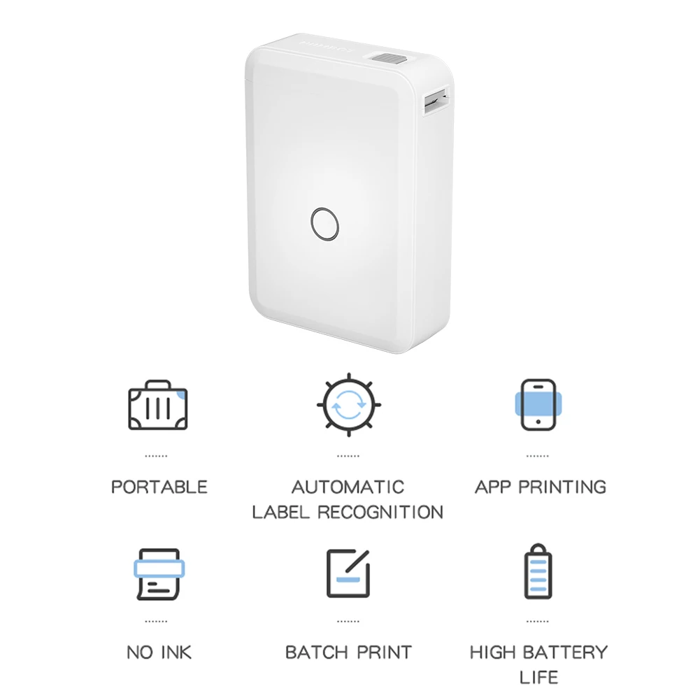 1. Мини портативный принтер для этикеток, который может печатать различные наклейки, такие как этикетки, текст, значки, границы, изображения, время, одномерный код, двумерный код, линии и т. Д.