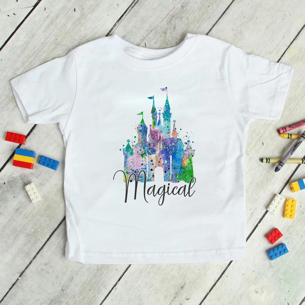 Детская футболка Disney с радужным замком, модная Милая одежда для ...