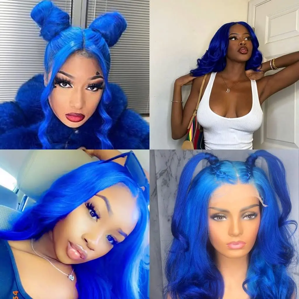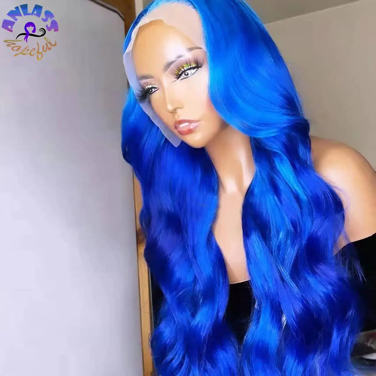 Pelucas натуральные голубые парики тела Волнистые кружевные передние парики для женщин черные синтетические волосы безклеевые кружевные парики натуральные волосы