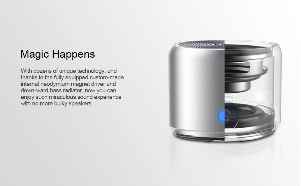Ранее самой большой болевой точкой колонок маленького размера была слабость басов. В таком крошечном пространстве нам нужно было добавить драйвер, аккумулятор и все электронные компоненты внутри. Кроме того, благодаря нашей инновационной технологии динамик EWA A106 был оснащен пассивным радиатором, поэтому он выпустил такие Потрясающие басы, это также необходимо.