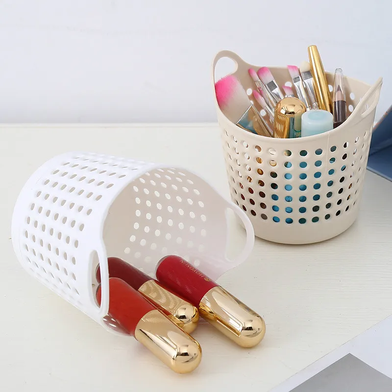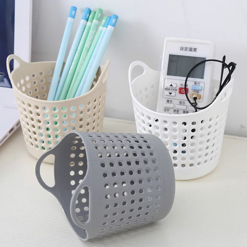 Многофункциональные бытовые предметы, пластиковый полый мини Настольный держатель для ручек, мелочи, офисные принадлежности, корзина для хранения, маленькая мусорная корзина