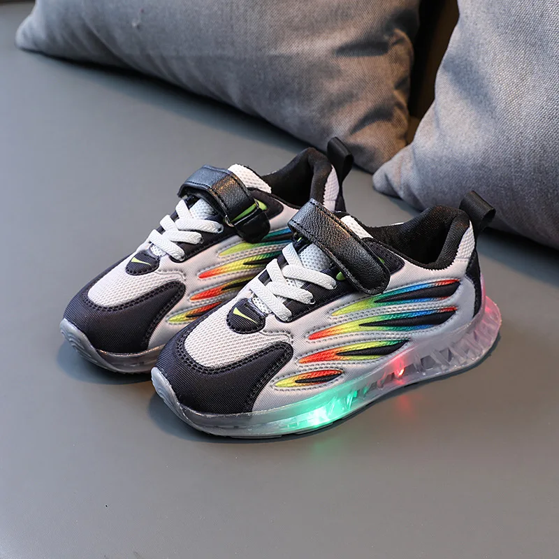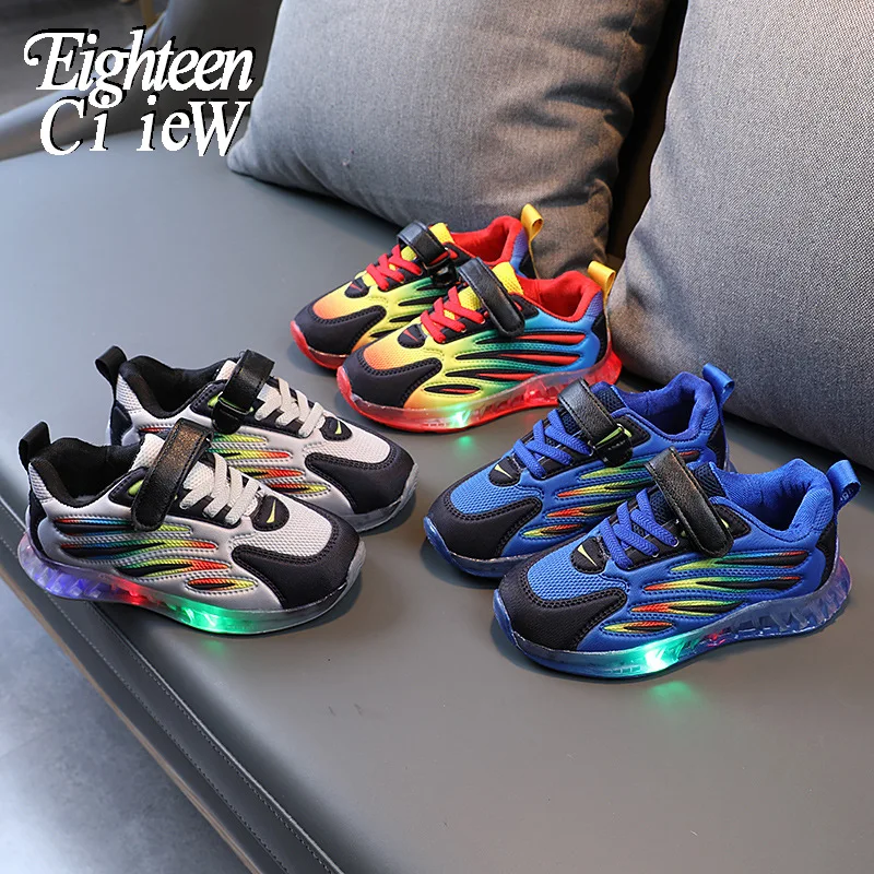 Детские светящиеся кроссовки, повседневная обувь для детей, сетчатые дышащие, с подсветкой, размер 21-30
