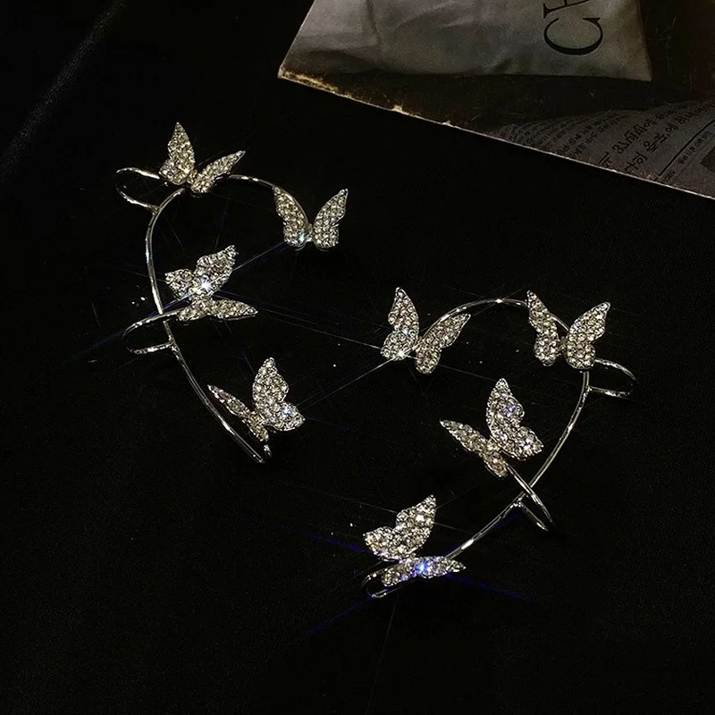 Silver Butterfly Earhook with Left EarFashion Zircon Earring