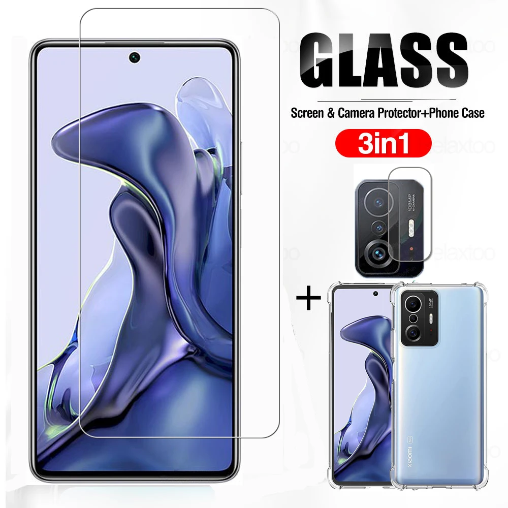 Чехол 3 в 1 + стекло + объектив для Xiaomi 11 T Pro, защита экрана, закаленное стекло для Xiaomi Mi 11tpro 11 T Pro, защитный чехол