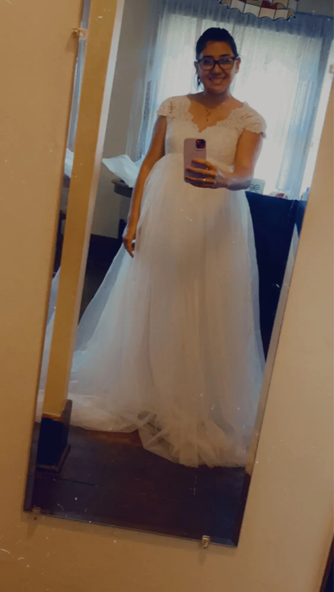 Свадебное платье для беременных с открытой спиной и кружевом из тюля