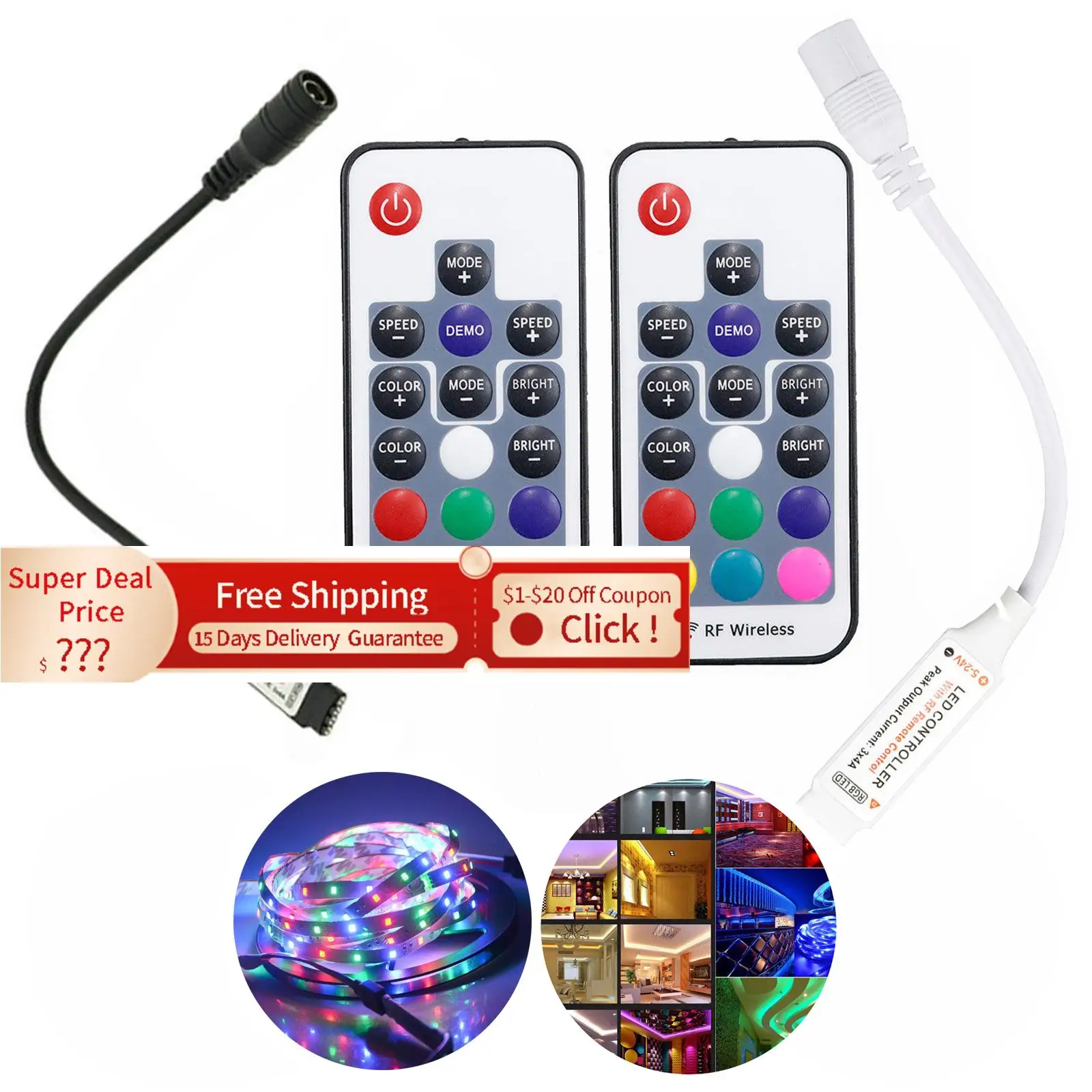 Светодиодный диммер с дистанционным управлением RF может управлять яркостью светодиодной ленты, мигающим и мигающим режимом. Новейшие продукты, Управляйте цветными светодиодными лентами RGB, изменяйте цветную светодиодную ленту RGB. Контакты: общий анод Рабочая температура: -20-60 Вход напряжение: 5V - 24V Выход: 3 Каналы Мощность Потребляемая мощность: <0,5 Вт Мощность Выход: 5V-60w, 12V-144W 24V-288W динамический режим: 22 режима статический цвет: 20 видов цветов Размеры: L 85*40*6 мм