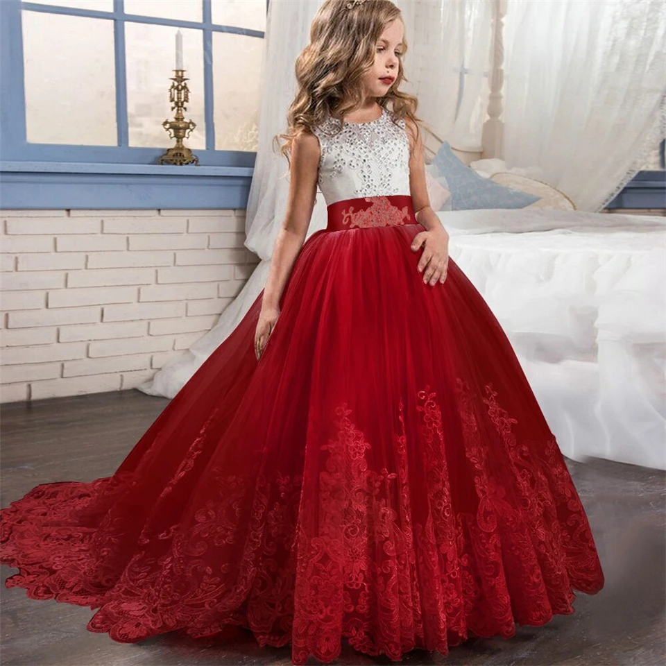 Красное кружевное платье с вышивкой для девочек на Рождество, день ...