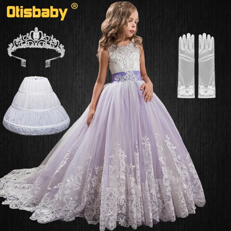 Кружевное платье для девочек, длинное платье принцессы, детское пла...