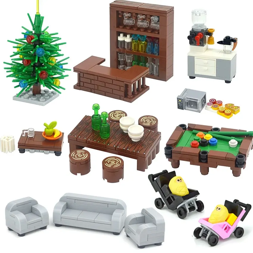 Сделай сам, городской друг MOC, аксессуары для дома, мебели, кирпичи, стол, шкаф, кровать, ТВ, диван, кухня, ванная комната, пианино, строительные блоки для компьютера