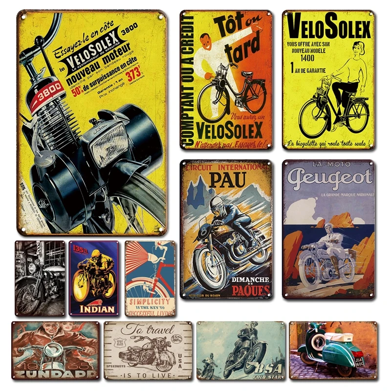 Винтажные мотоциклы, металлическая пластина, жестяная вывеска, перс...
