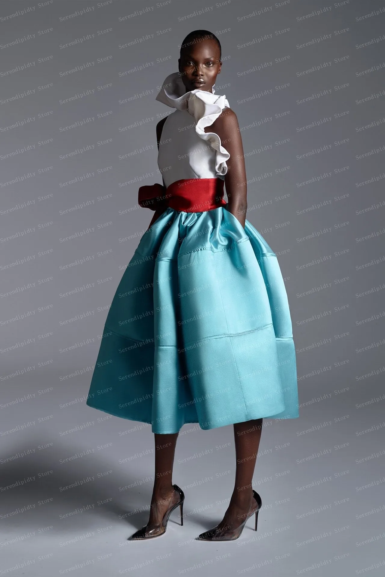 Пышная пятнистая юбка миди, юбки, длинная Плиссированная юбка, женская одежда, корейская модная юбка с высокой талией, голубая юбка, платье с оборками