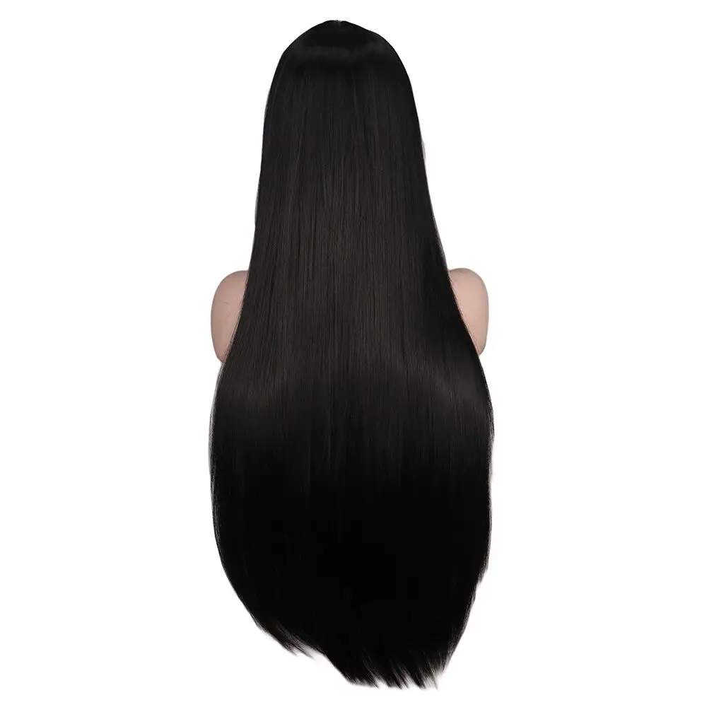 Хэллоуин Morticia addams80 см 100 см длинный черный прямой парик семья среда ADAMS CosplayMiddle часть синтетический Pelucas костюм