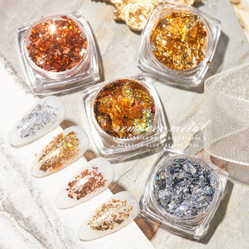 Золотые блестки из фольги, блестки, хлопья, нестандартные Блестки из алюминиевой фольги, блестки для ногтей, хромированная пудра, маникюр, украшения для дизайна ногтей