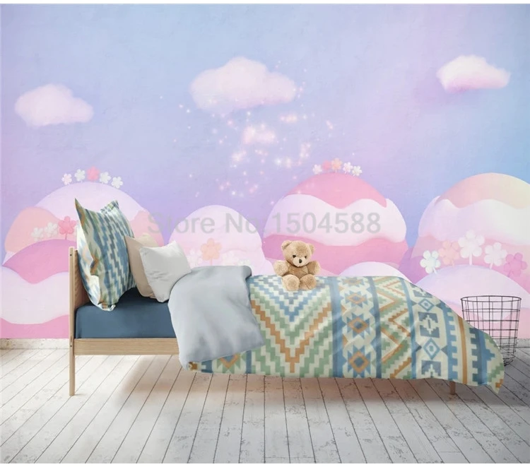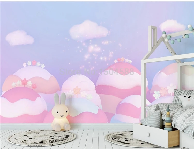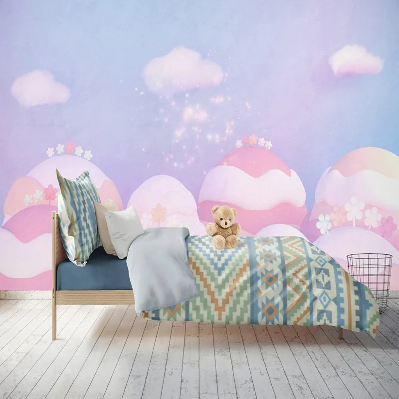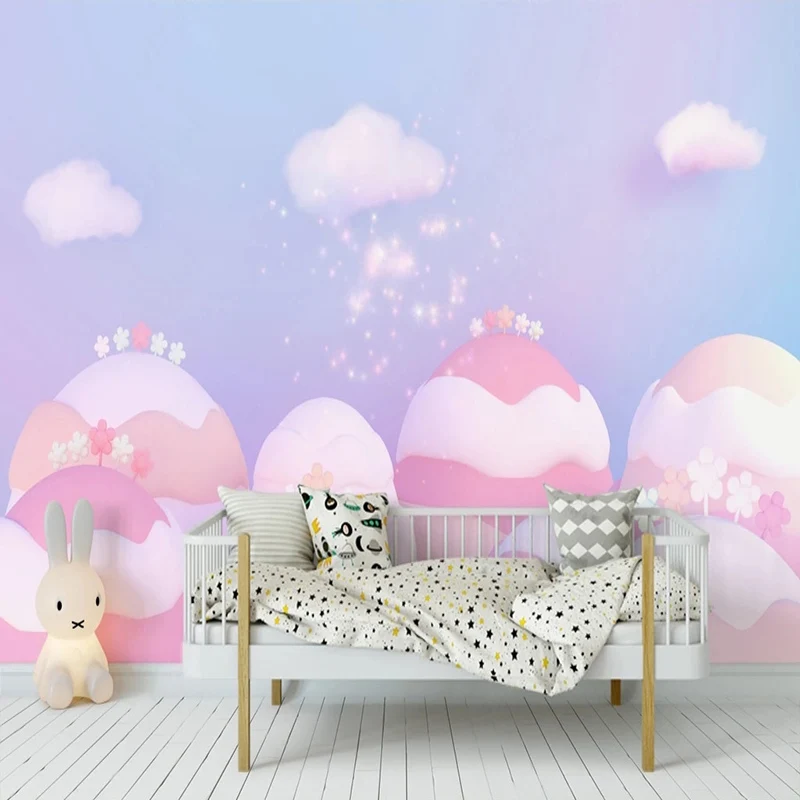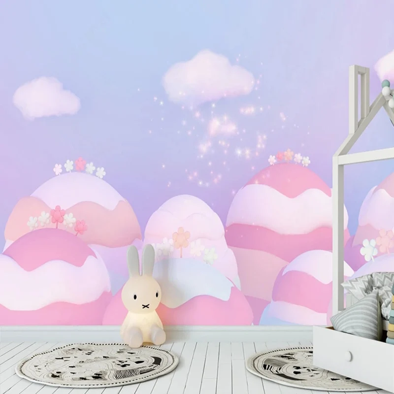 Настенные 3D-обои на заказ, милый розовый мультяшный фон с изображением белого облака, дерева, леса, настенная живопись для детской комнаты, 3D домашний декор