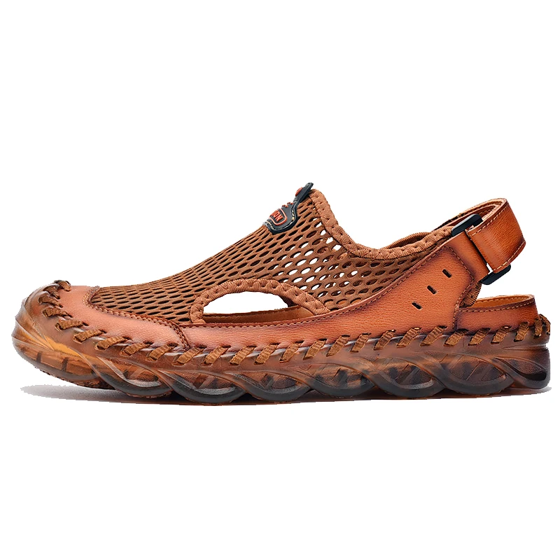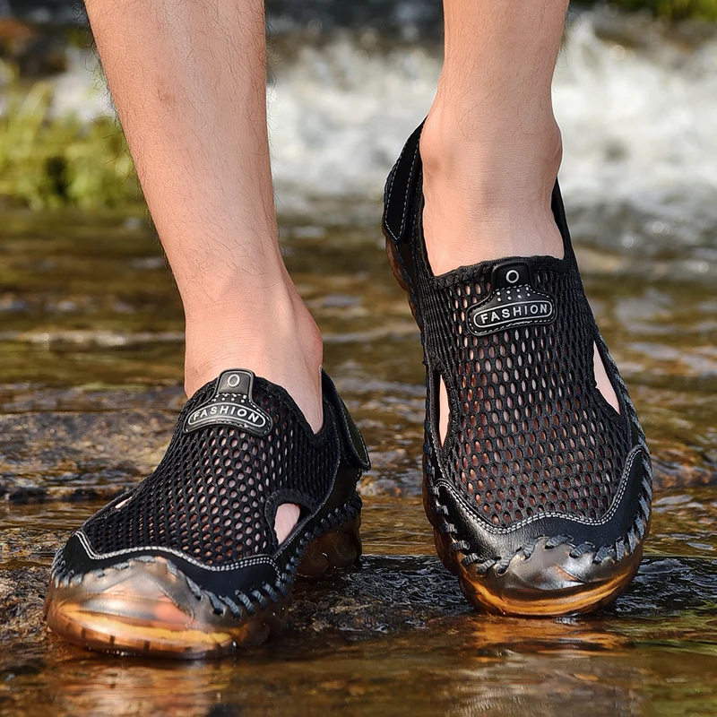 Мужские сетчатые сандалии ручной работы, черные классические пляжные сандалии, модные повседневные спортивные уличные тапочки, большие размеры, лето 2021