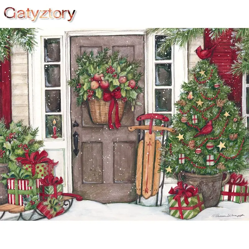 CHENISTORY, Цветочная дверь, масло, раньше для взрослых, 60x75 см, ...