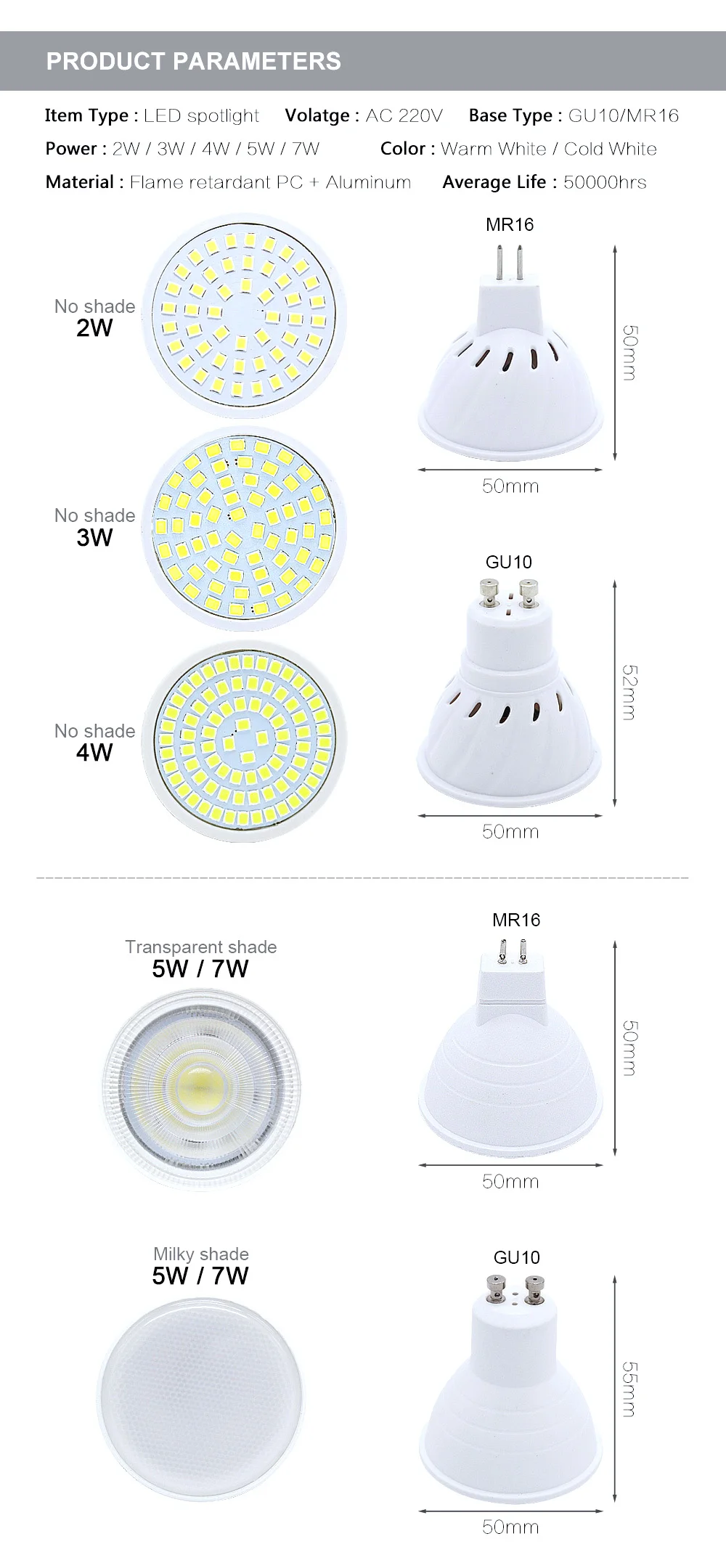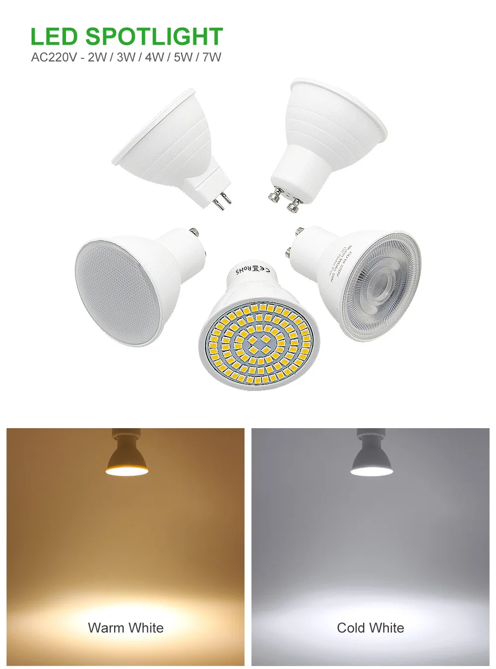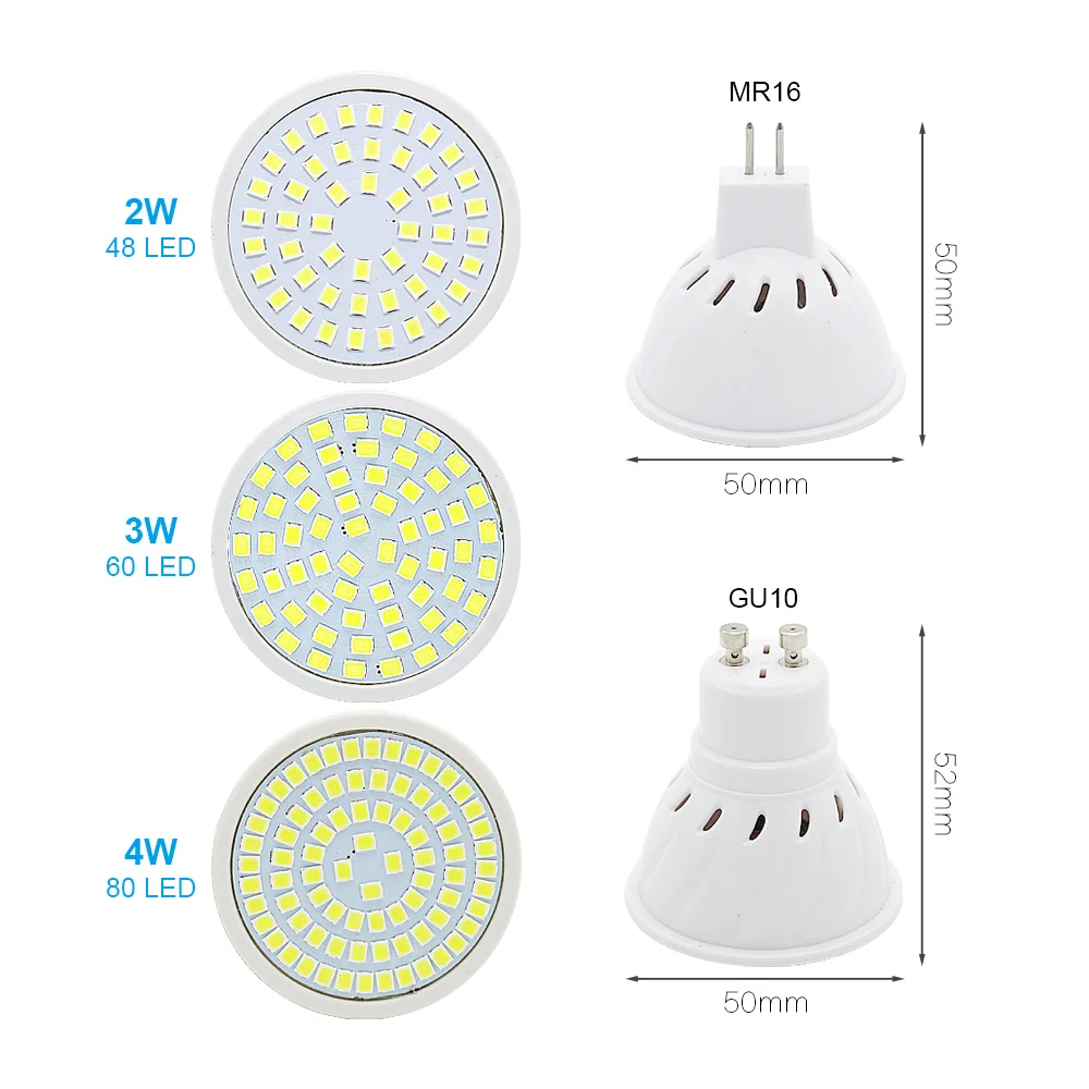 5 шт.лот GU10 Светодиодная лампа направленного света AC 220 В 2 Вт 3 Вт 4 Вт 5 Вт 7 Вт MR16 12 В постоянного тока Светодиодная лампа 2835SMD