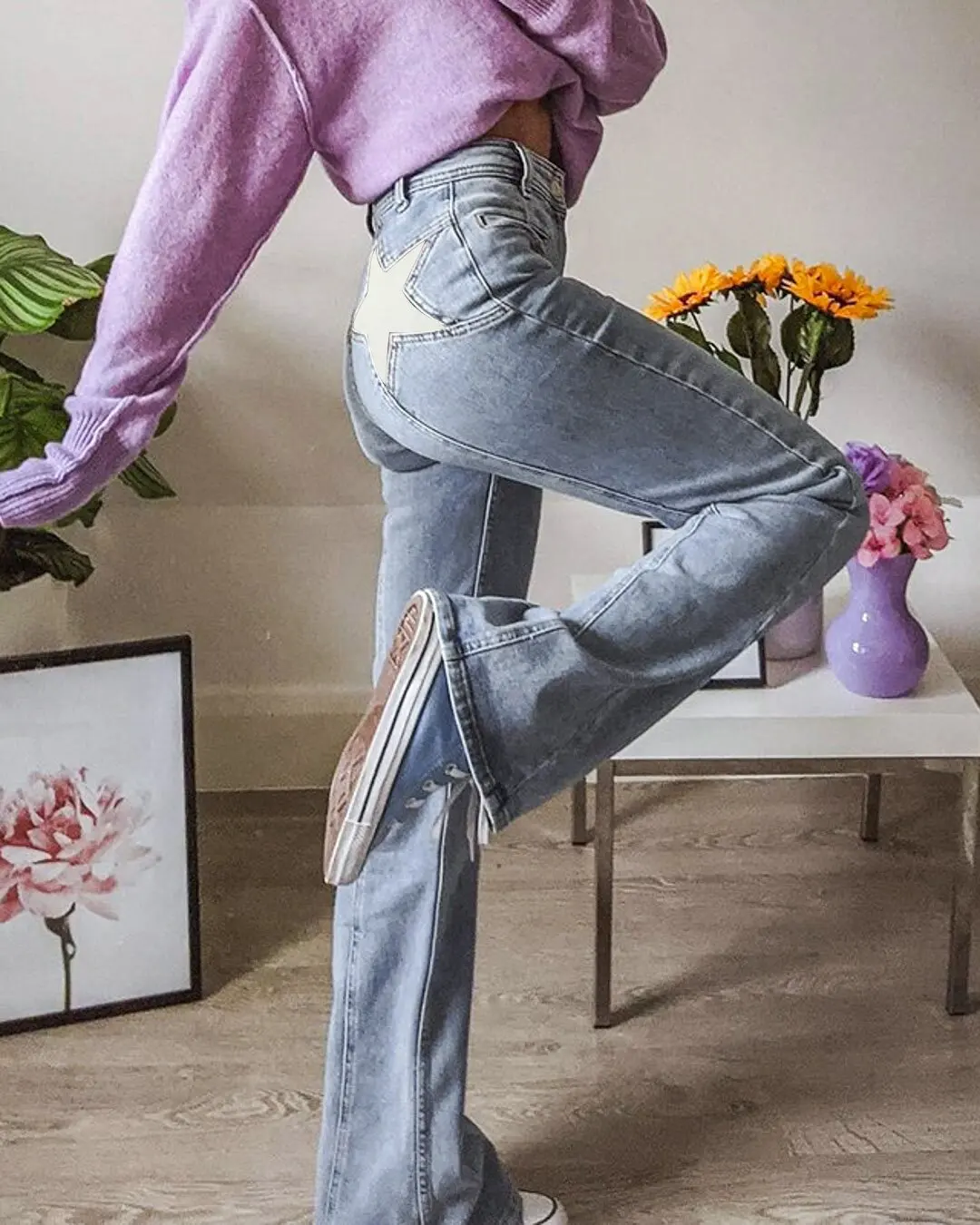 Это очень красиво, но звезды меньше, чем на фотографиях, а текстура и немного похожи на грязный материал, это не ткань, цвет джинсов больше соответствует темно-джинсам, в противном случае Крой очень хороший, я проверяю