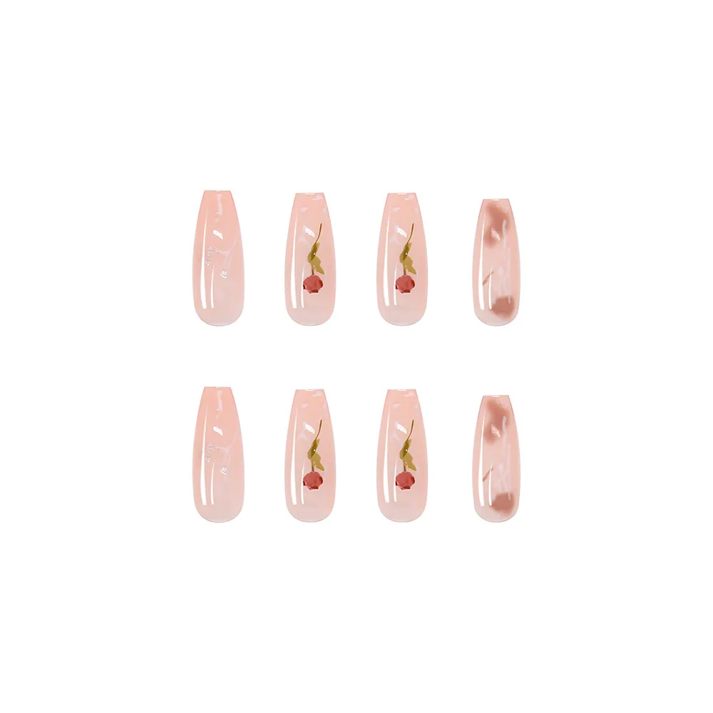 24 шт.коркор. Длинные накладные ногти балерины дизайн розы искусственные гробы накладные ногти с клеем полное покрытие накладные ногти