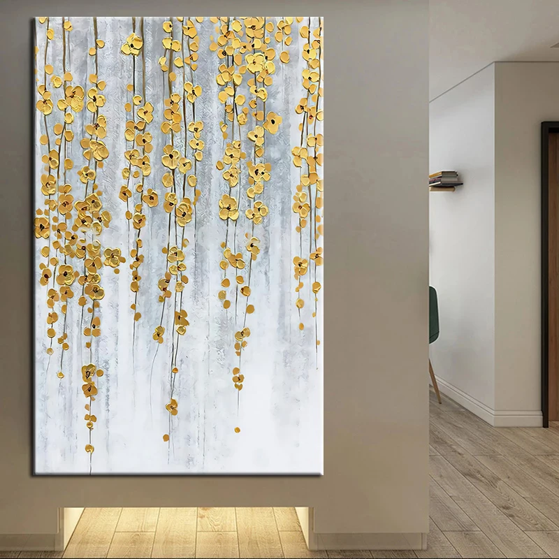Минималистичная Роскошная Красочная картина маслом по золотой линии...