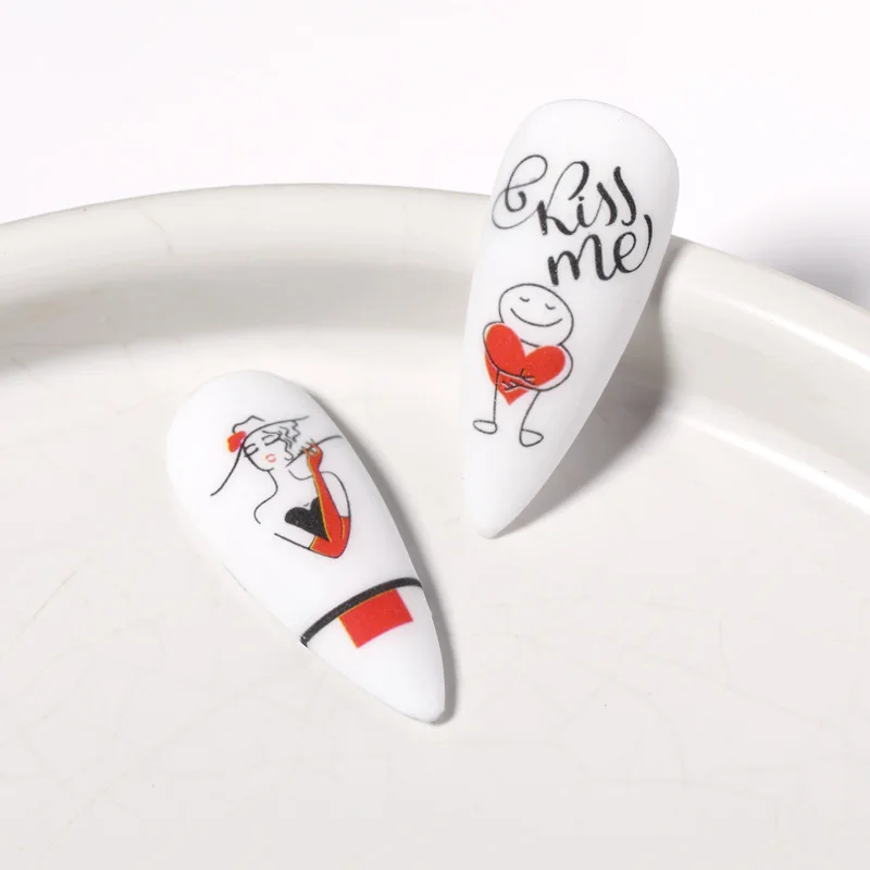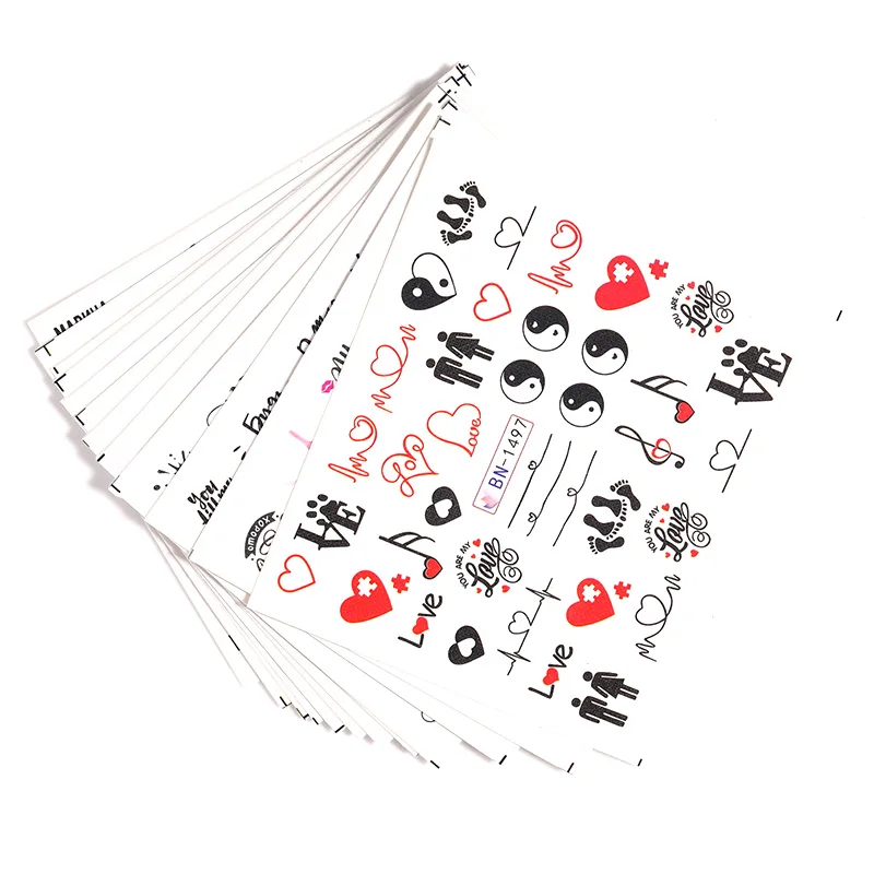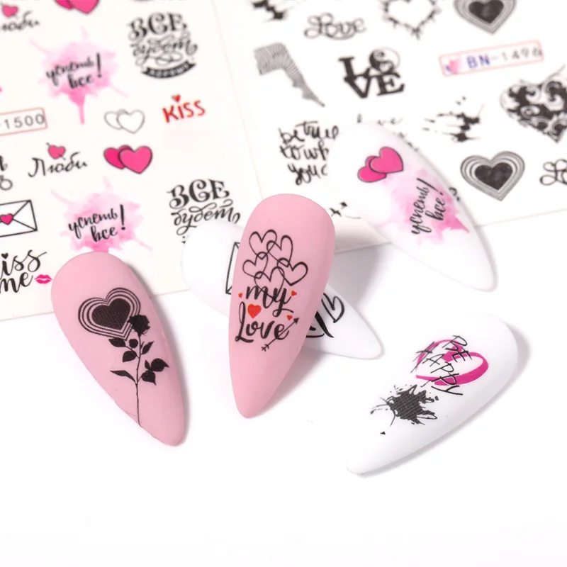 Наклейки для ногтей День Святого Валентина сердце буквы цветок Дизайн Маникюр для ногтей водные наклейки Стикеры слайдеры дизайн ногтей украшение