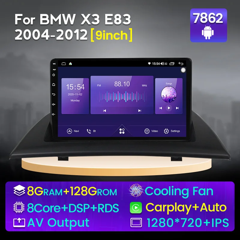 NaviFly 8 + 128G стерео Android 11 Автомобильная интеллектуальная система для BMW X3 E83 2004-2012 Беспроводной Carplay DSP охлаждающий вентилятор RDS WIFI RDS