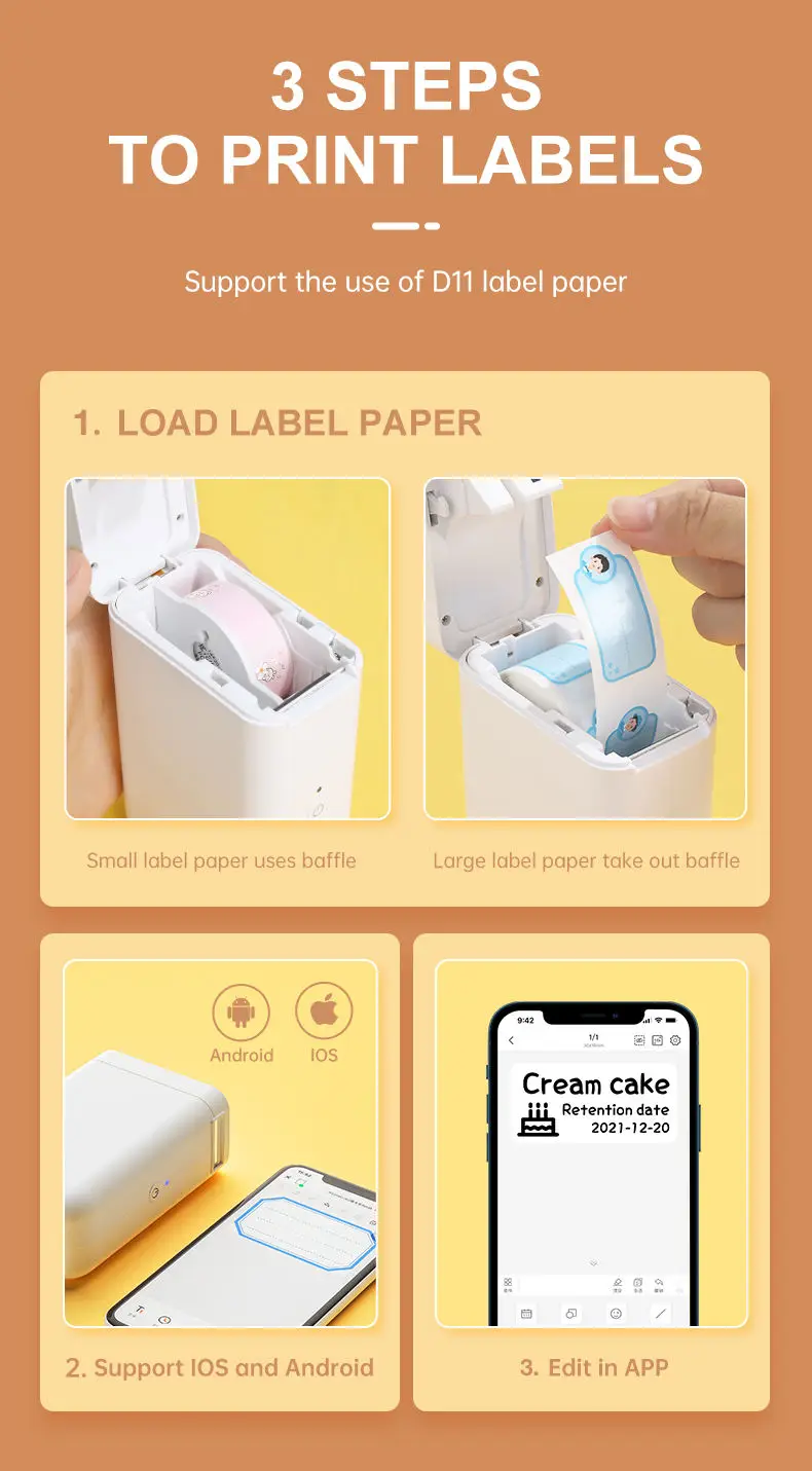 Принтер Niimbot D101 D11 для термопечати этикеток, портативный карманный принтер для этикеток, для дома и офиса, мини-печать