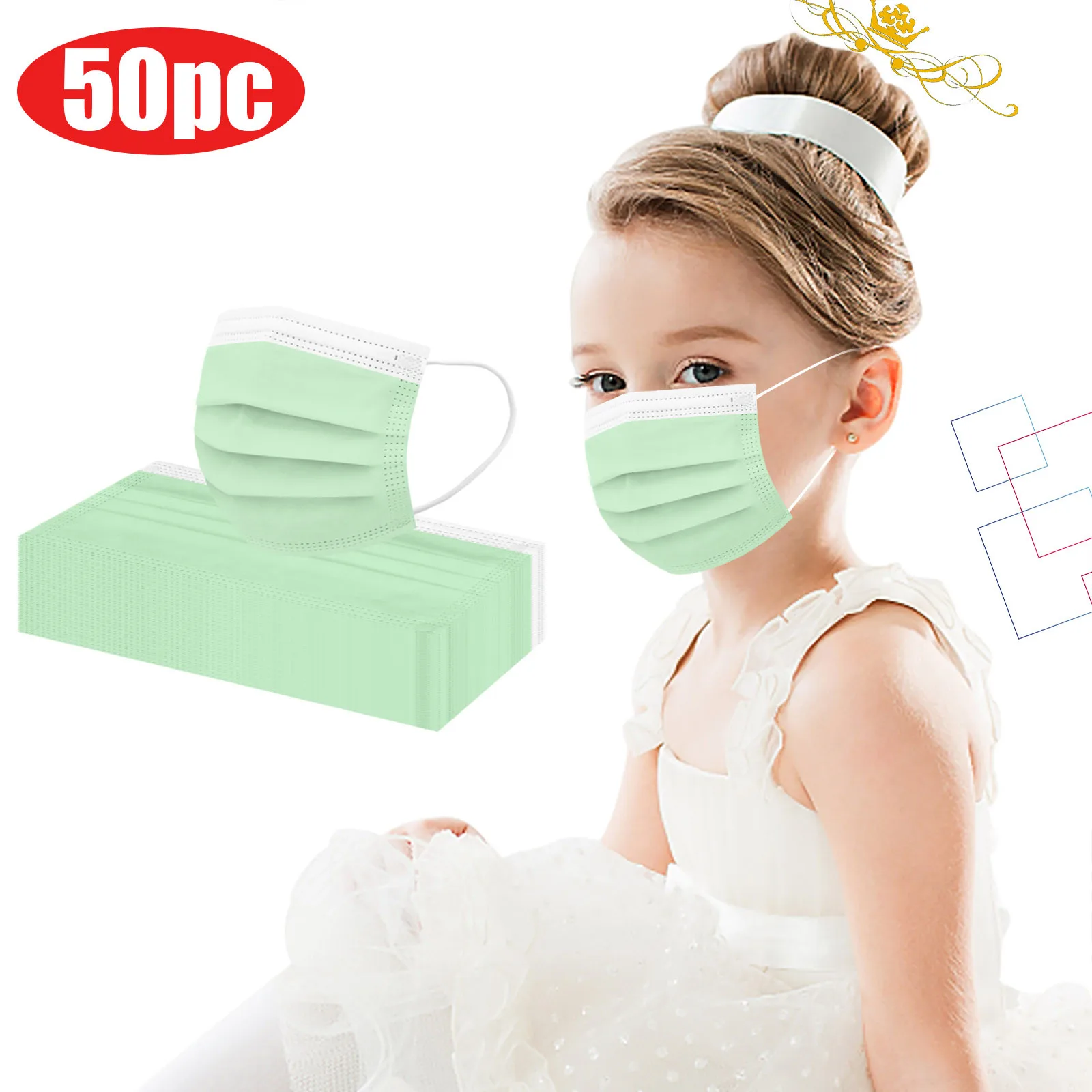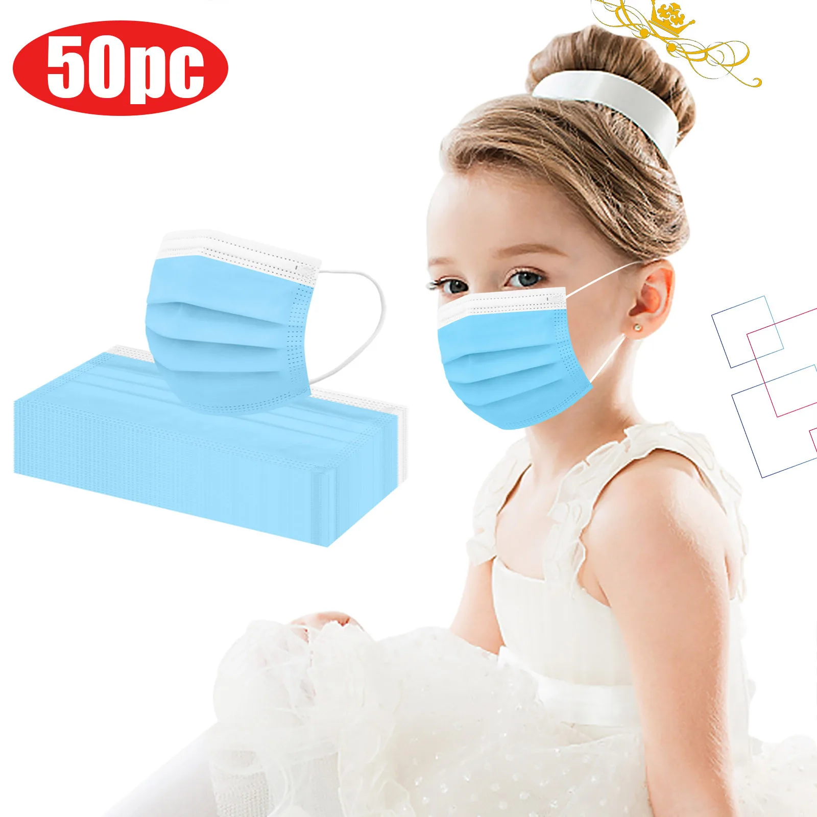 Детские маски для лица 50 шт одноразовые 3 слойные защитные маски для лица-с нановолоконным фильтром подкладка-Возраст 4-12 детей маска для лица