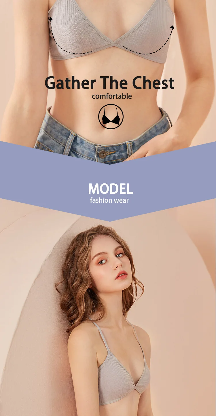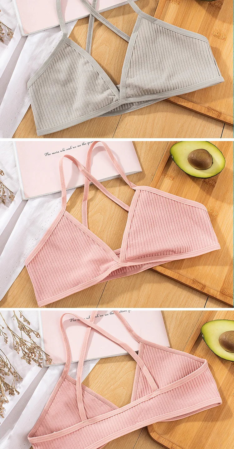 Комфортные хлопковые бюстгальтеры для женщин, тонкий Бралетт во французском стиле, сексуальный бюстгальтер с глубоким V-образным вырезом и треугольной чашкой, красивый бюстгальтер с красивой спинкой, маленький размер