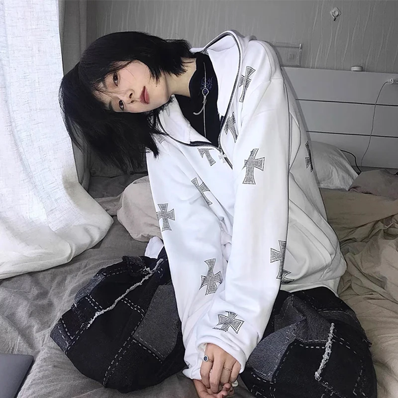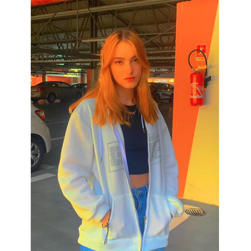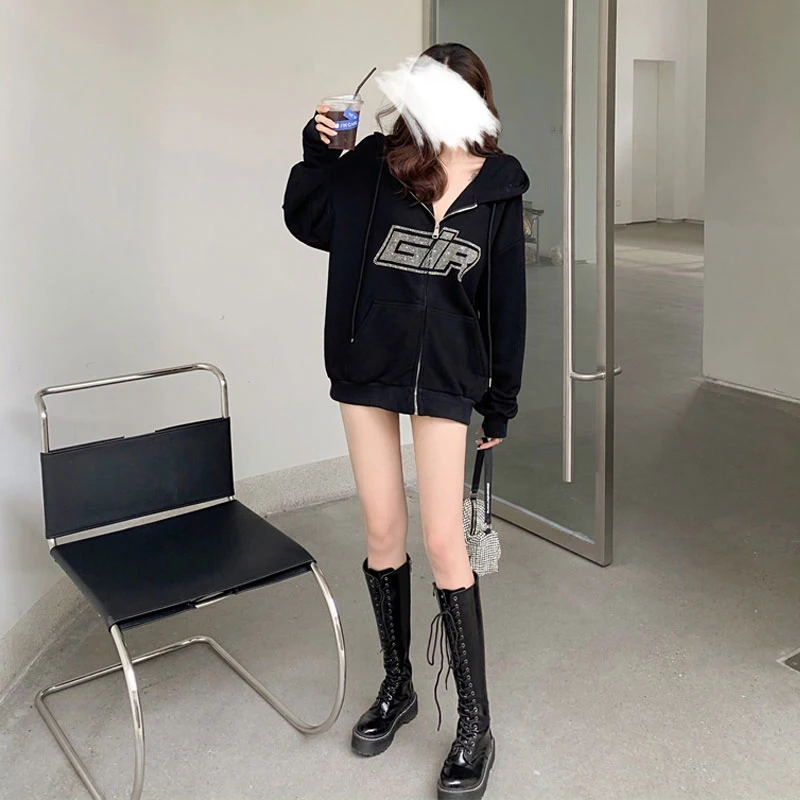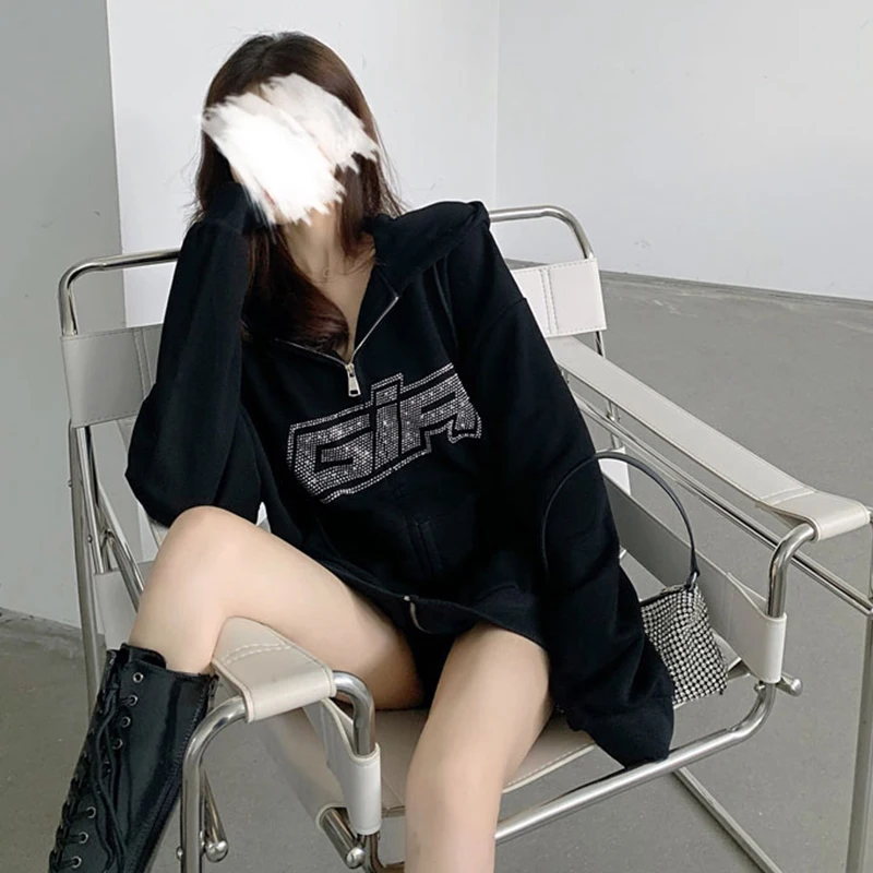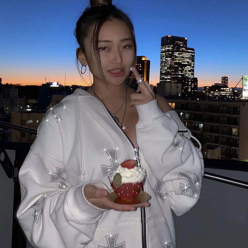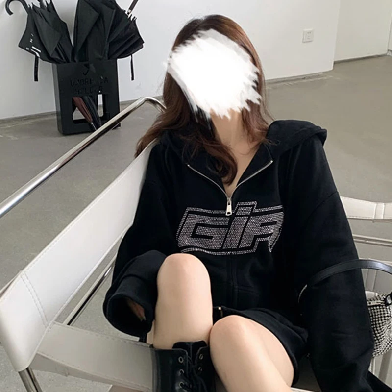 Стразы толстовка на молнии большого размера Осень 2021 Y2k одежда ч...