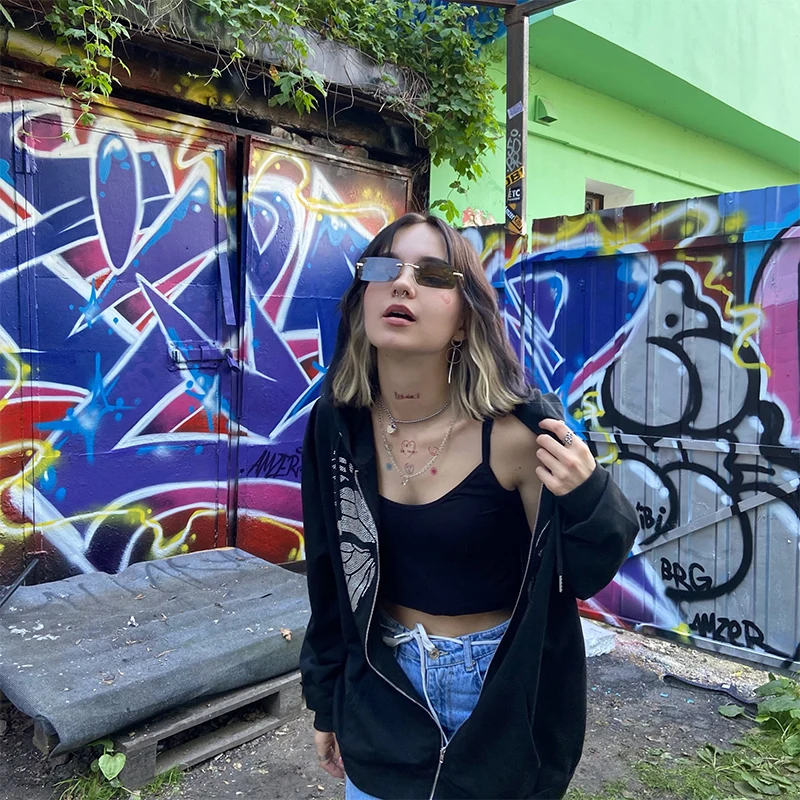 Толстовка Y2k Стразы с капюшоном на молнии с изображением готическо...
