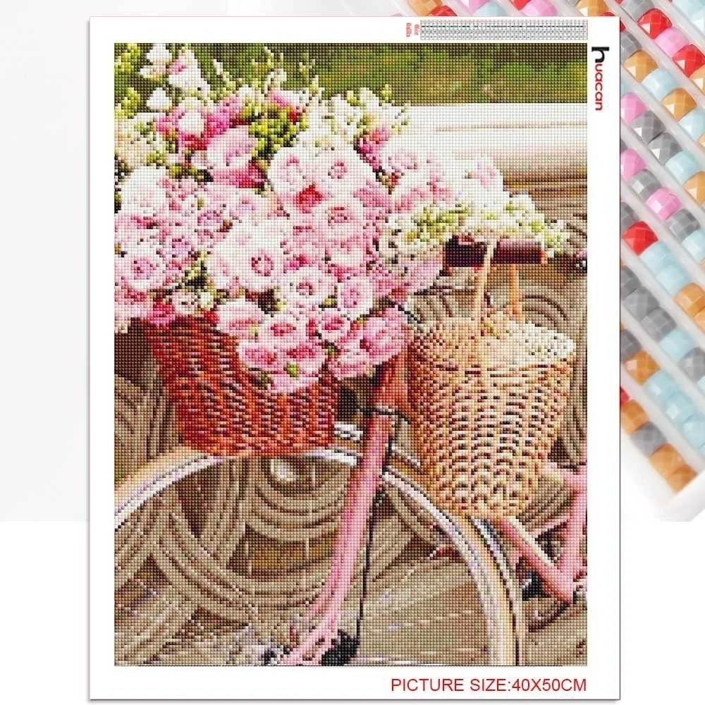 Huacan Алмазная мозаика, вышивка, велосипед, алмазная живопись, полный квадратный цветок, домашний декор, картина Стразы