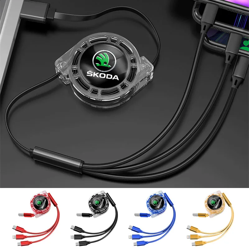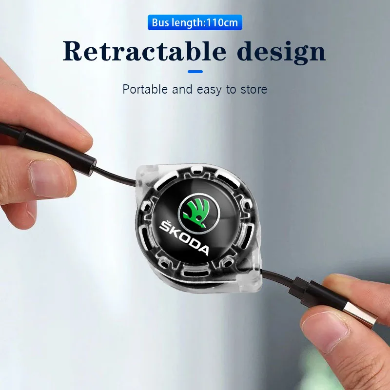 Выдвижной кабель USB Type-C 3 в 1 из жидкого силикона для быстрой зарядки и передачи данных для Skoda Rapid Fabia Superb Kamiq Octavia Kodiaq Karoq Scal