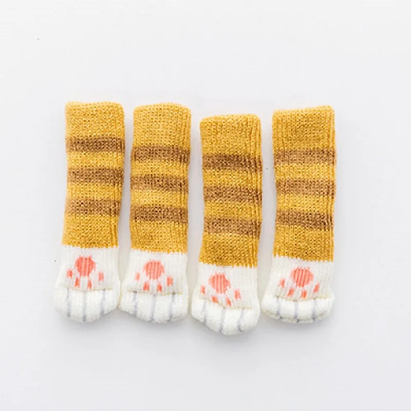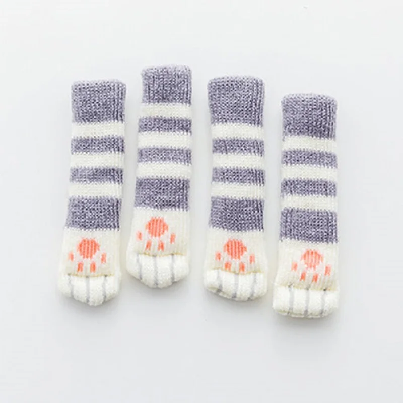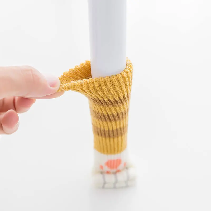 4 шт., милый нескользящий чехол для ножки стула с кошачьими лапами, носки-тапочки, защита для пола, вязаные носки, крышка для ручки двери, украшение для дома