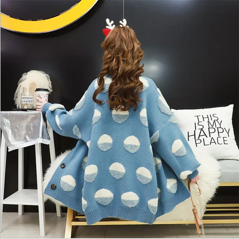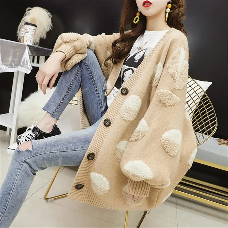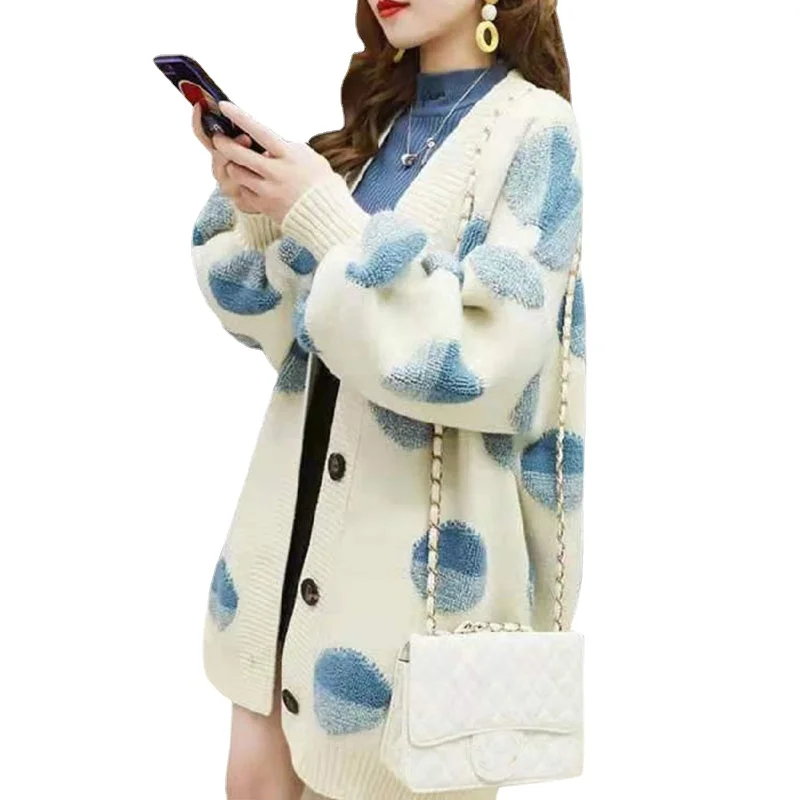Осенний плотный теплый свитер, кардиган, женский длинный вязаный свитер свободного покроя с длинными рукавами, в горошек, осень-весна 2022