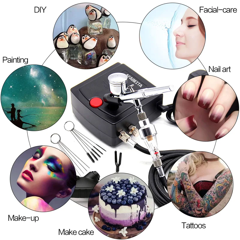 Аэрограф Двойного Действия 0,3 мм, краскопульт с европейской и американской вилкой, комплект с воздушным компрессором для художественной живописи, маникюра, крафтовой Аэрограф, инструмент для ногтей