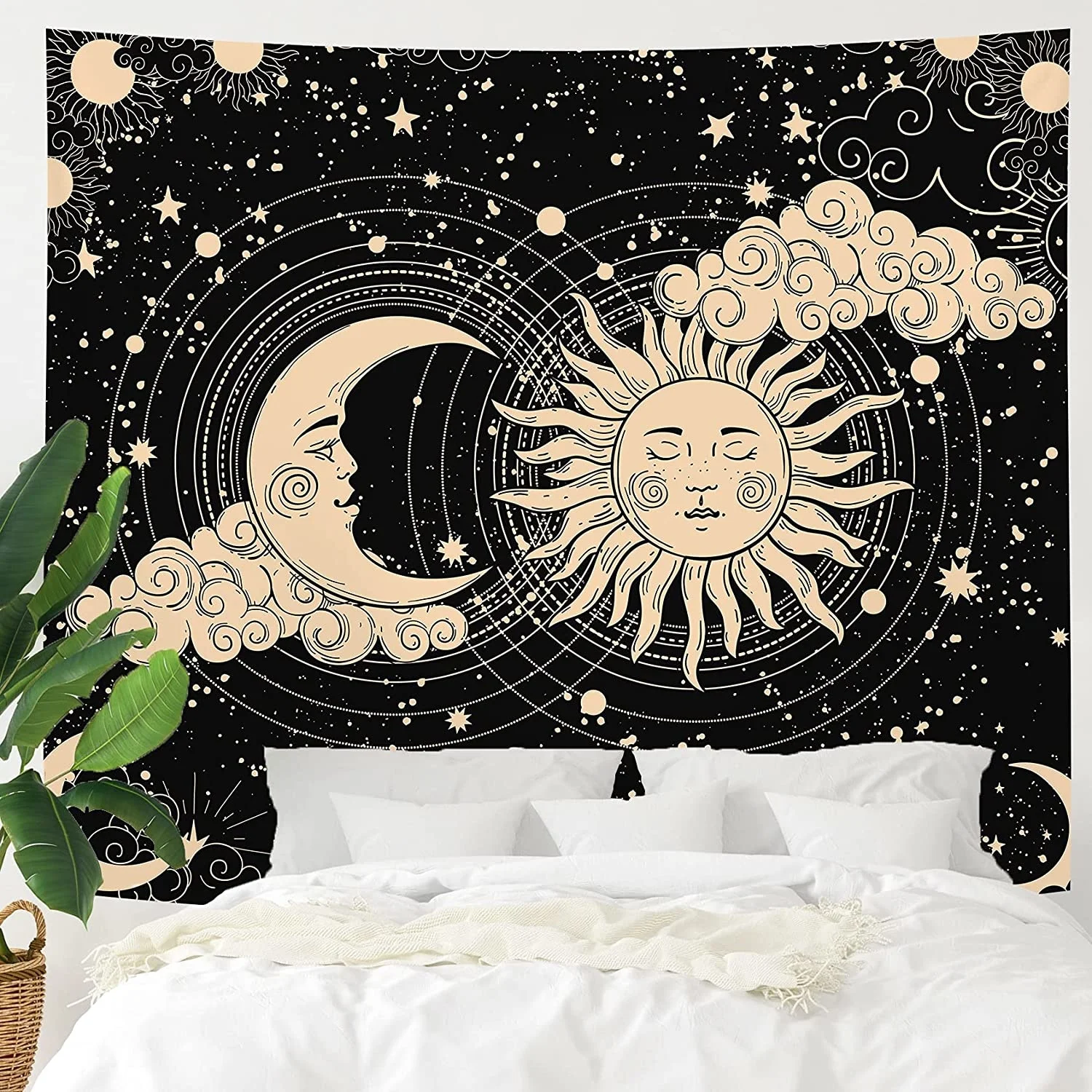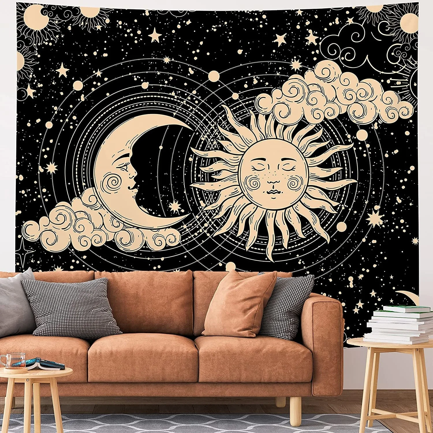 Гобелен с Луной и эстетикой солнца гобелен с Луной черные темные духовные гобелены Настенный декор комнаты для спальни 95x75 см