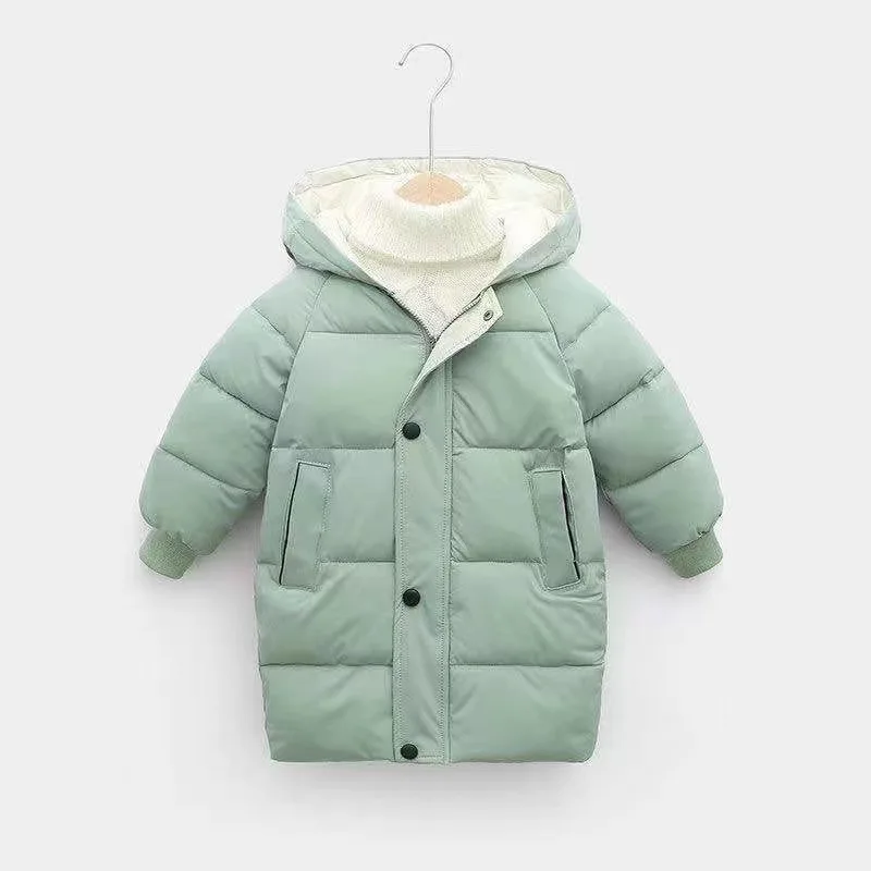 Детское Стеганое пальто средней длины, на пуху, с капюшоном