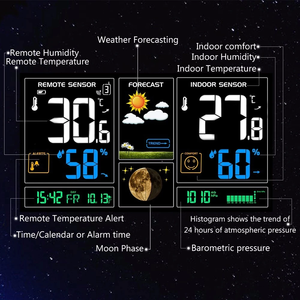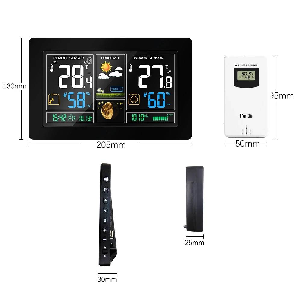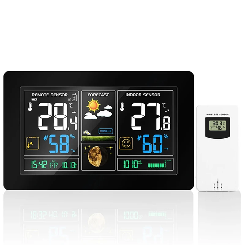 Комнатная и уличная метеостанция с термометром и гигрометром, цветной беспроводной уличный Дистанционный датчик, часы-будильник с вечным календарем