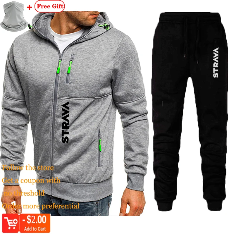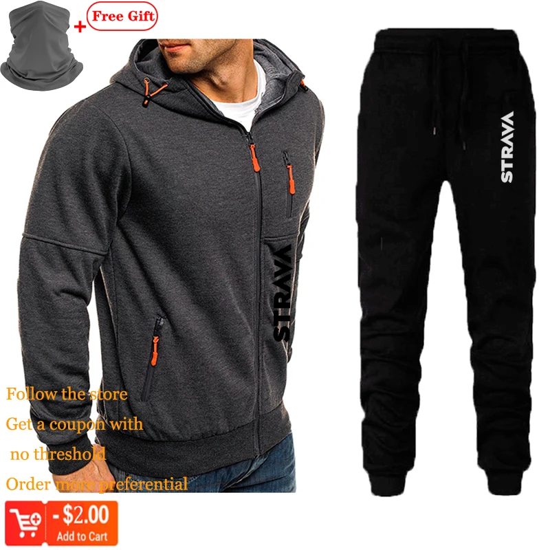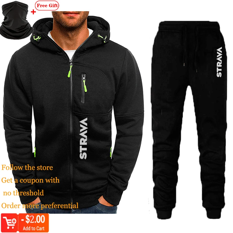 Strava велосипедная одежда, зимний мужской спортивный костюм для занятий спортом на открытом воздухе, для фитнеса, повседневный жаккардовый шерстяной костюм на молнии, теплая толстовка с капюшоном, комплект для велоспорта