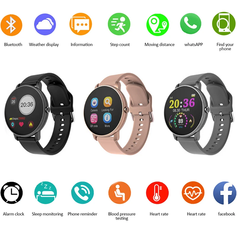 Новинка 2021, Смарт-часы с цветным экраном для женщин и мужчин, водонепроницаемые спортивные фитнес-часы с пульсометром и тонометром для Xiaomi Huawei