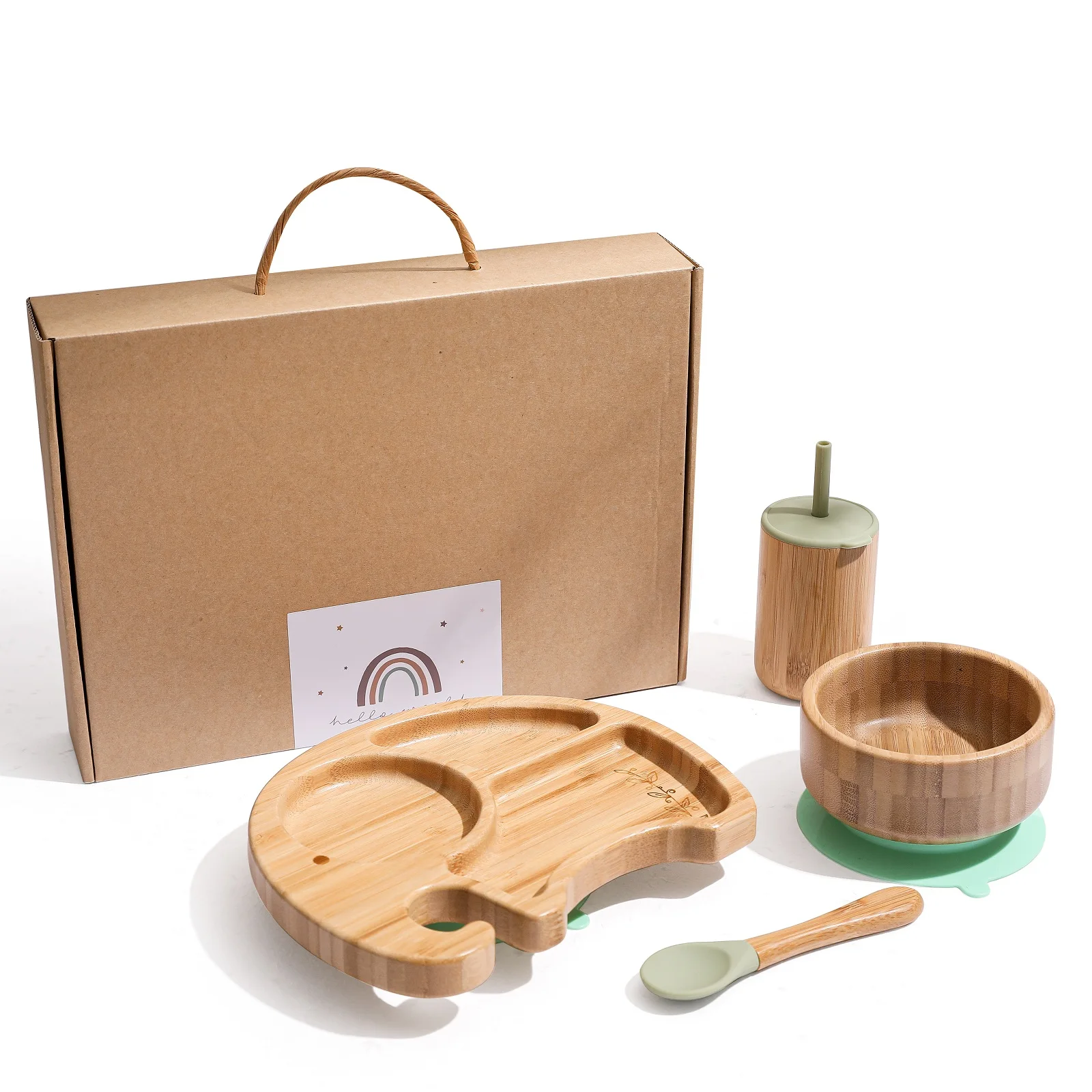 1 Набор для кормления ребенка инструменты, пищевой силикон, нагрудники для малышей, бамбуковые деревянные чашки, тарелки, соломенная чашка, посуда, детские подарки