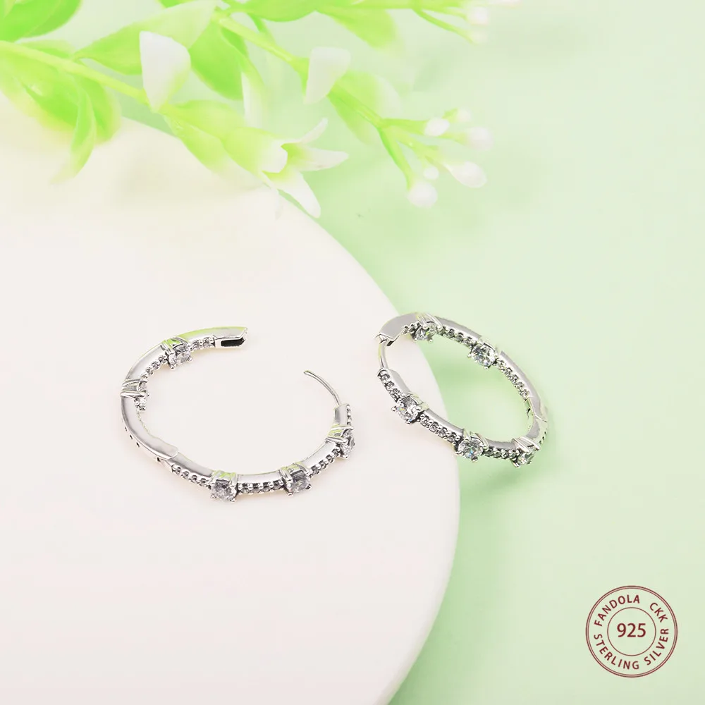 Серьги-кольца женские из серебра 925 пробы с блестящим паве