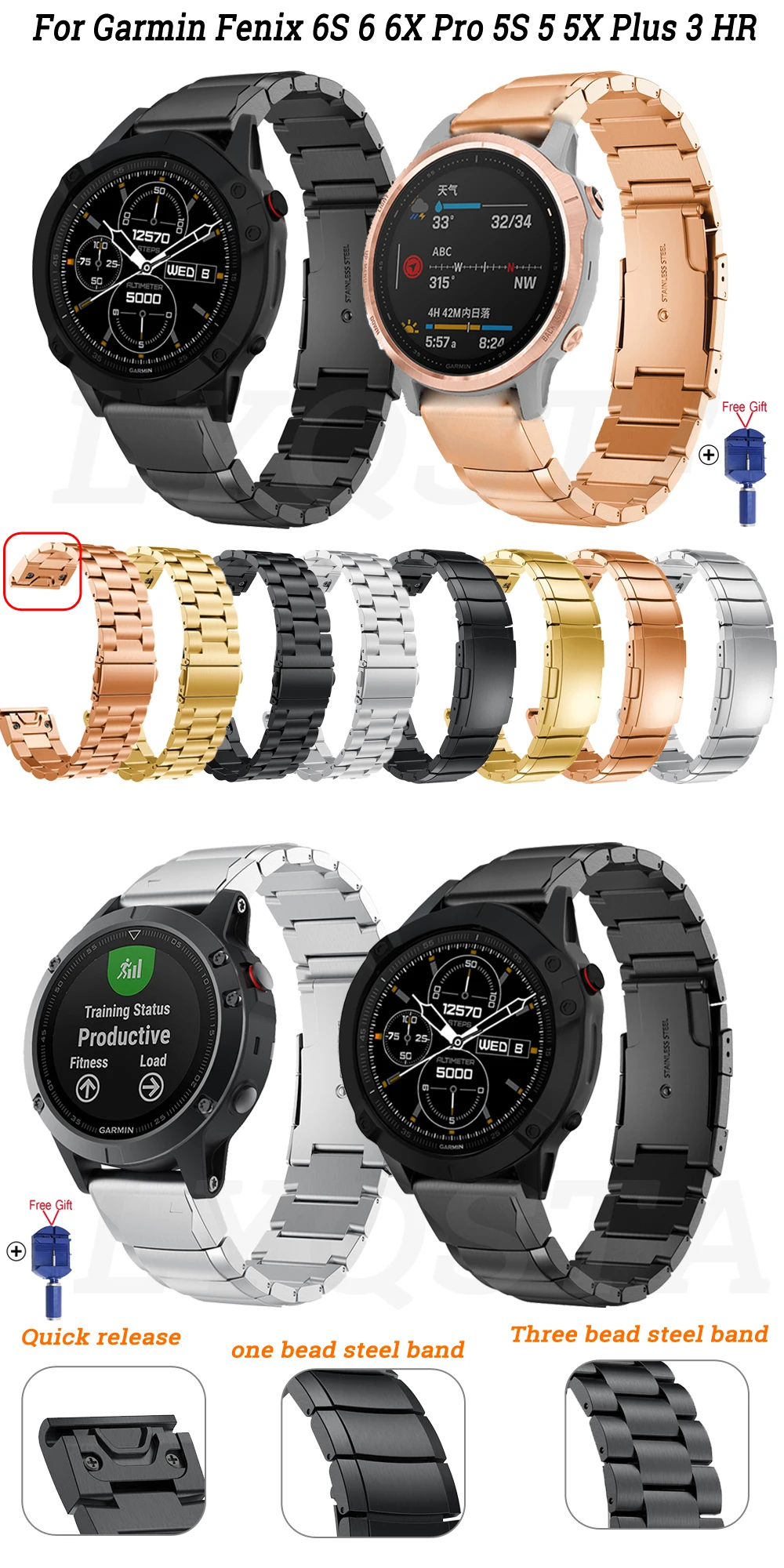 Ремешок для наручных часов 20 22 26 мм, металлический быстросъемный браслет из нержавеющей стали для Garmin Fenix 6S 6X 6 Pro 5X 5 5S 3HR Easyfit