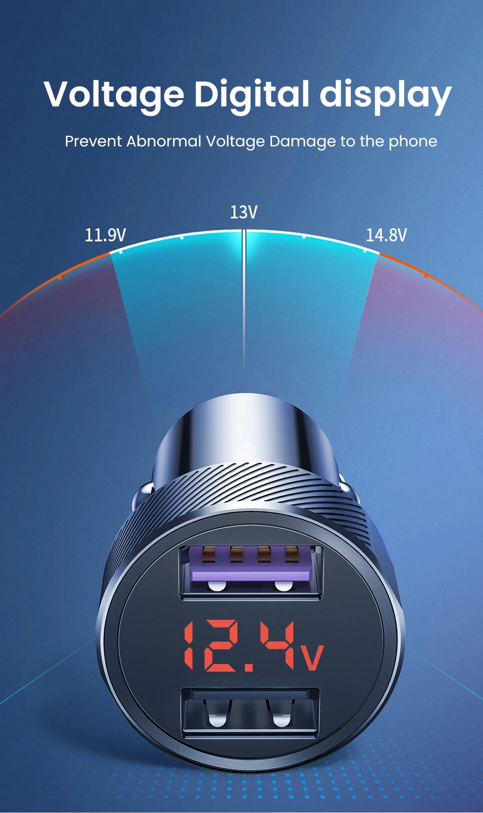 featureSmart Phone Car Charger LED Screen Display 5V/3.4A
