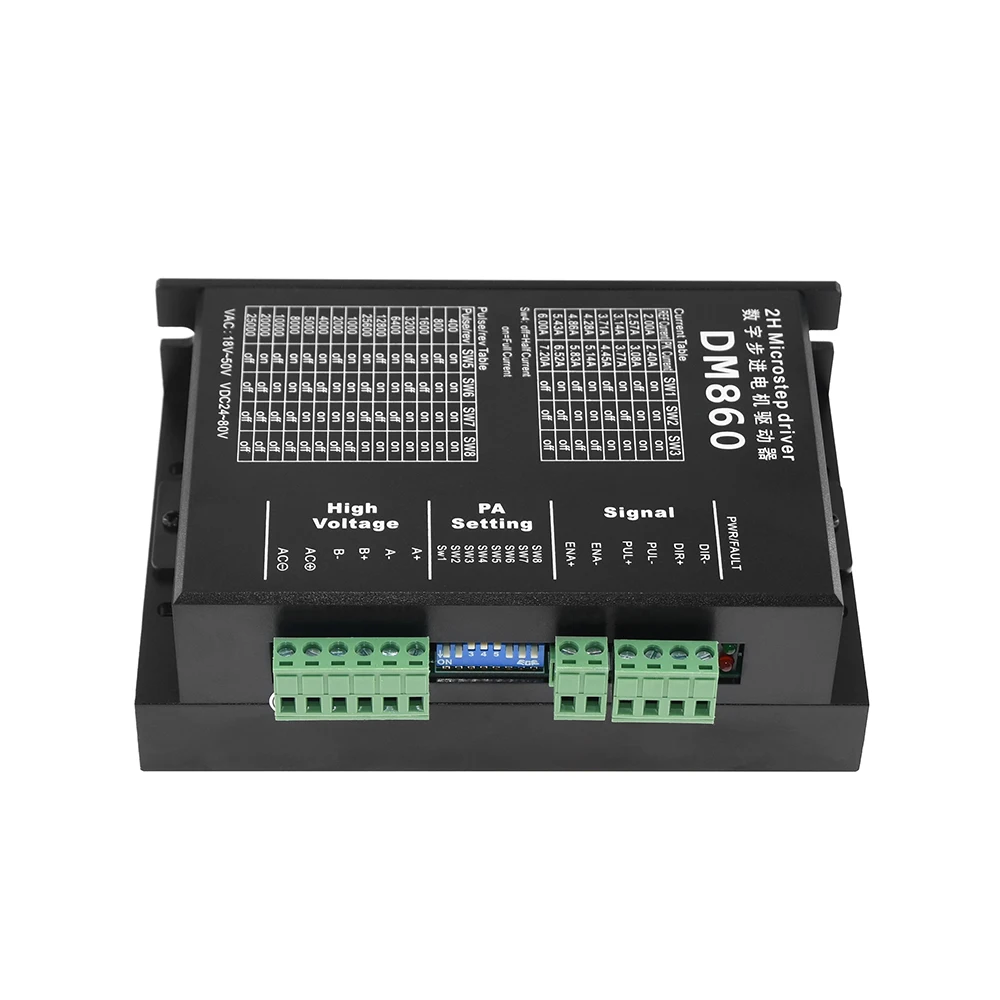 Этот драйвер-Цифровой Драйвер шагового двигателя DM860 DSP, подделка увеличена до 128, подходит для целей высокое подразделение. Подходит для шаговых двигателей: Тип 57, 86, 4 фазы 2 фазы (4 кабеля, 6 кабелей, 8 кабелей)